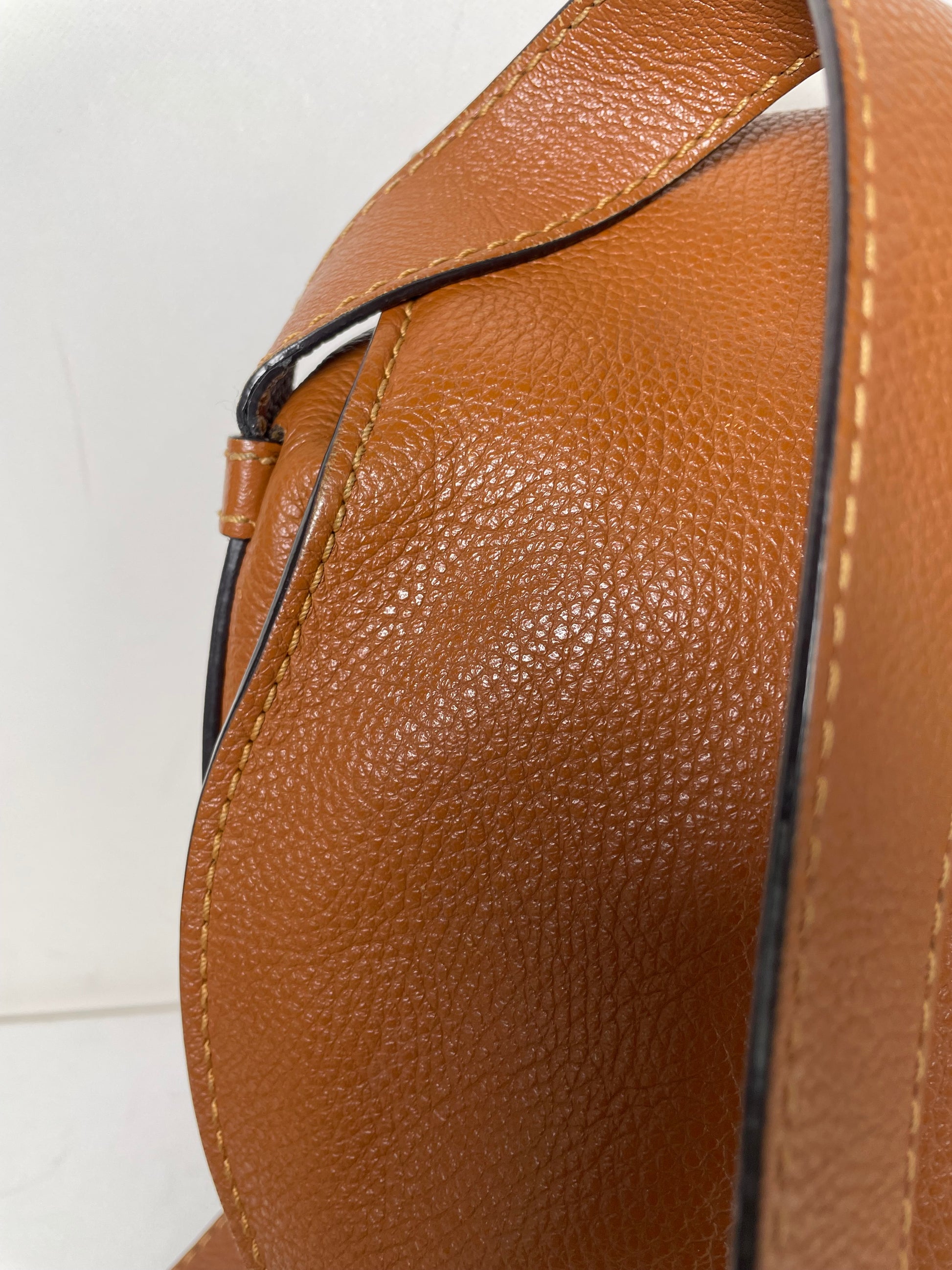 This is a great bag in good used condition. Light scratches to hardware and discolouration. Exterior leather in great condition with minor signs of wear and a couple of scratches. Some signs of wear to the inking around the connector tabs for the long strap and the carry strap, light mark where the strap hardware sits on the strap. Inside is in great condition with soft signs of use. Slight softening to the closing toggles.