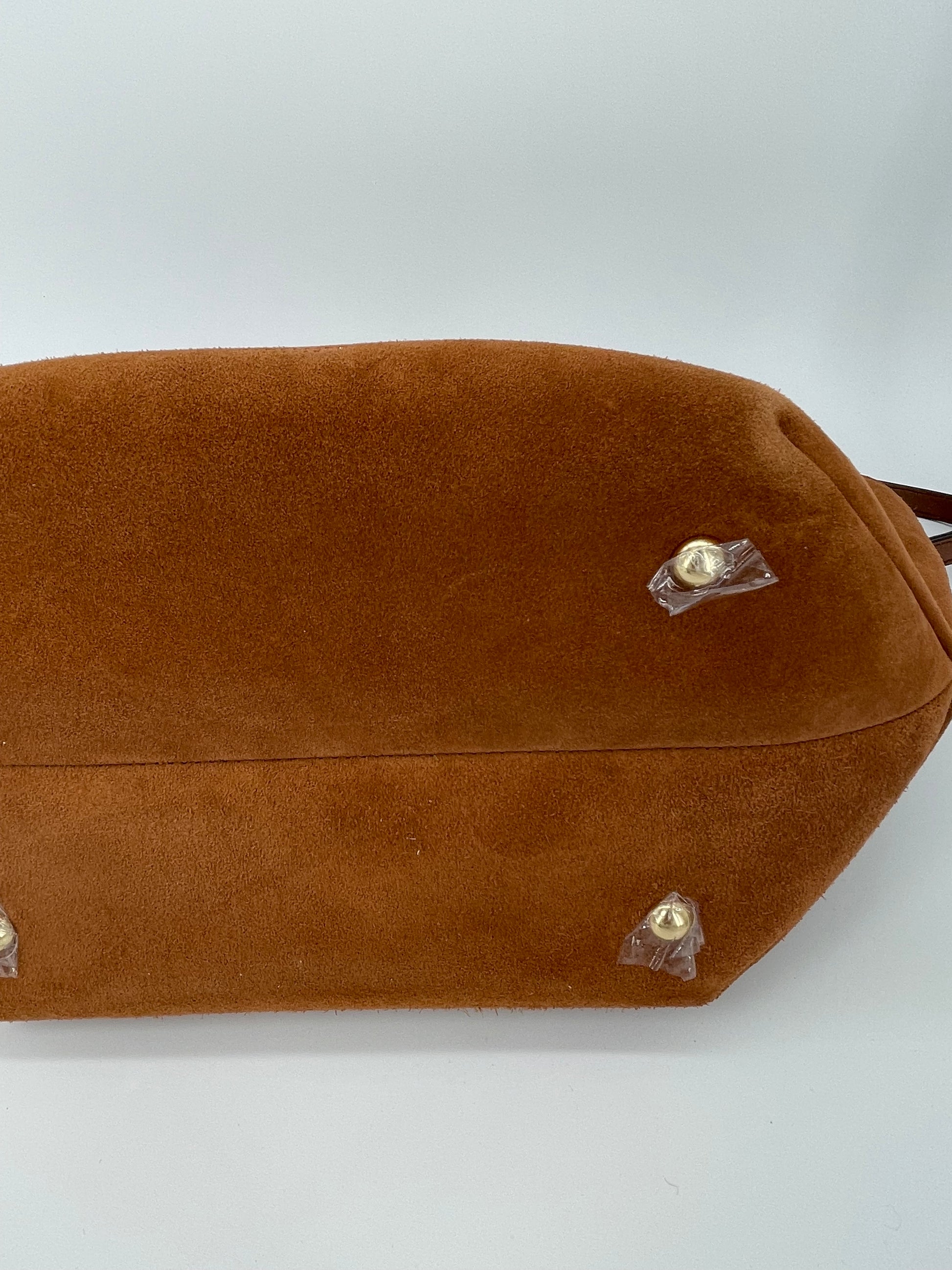 This is an absolutely beautiful bag in fantastic condition. The protective plastic is still on some of the hardware. Inside is clean with very minor signs of use. The suede is in fabulous condition with very minor signs of use.