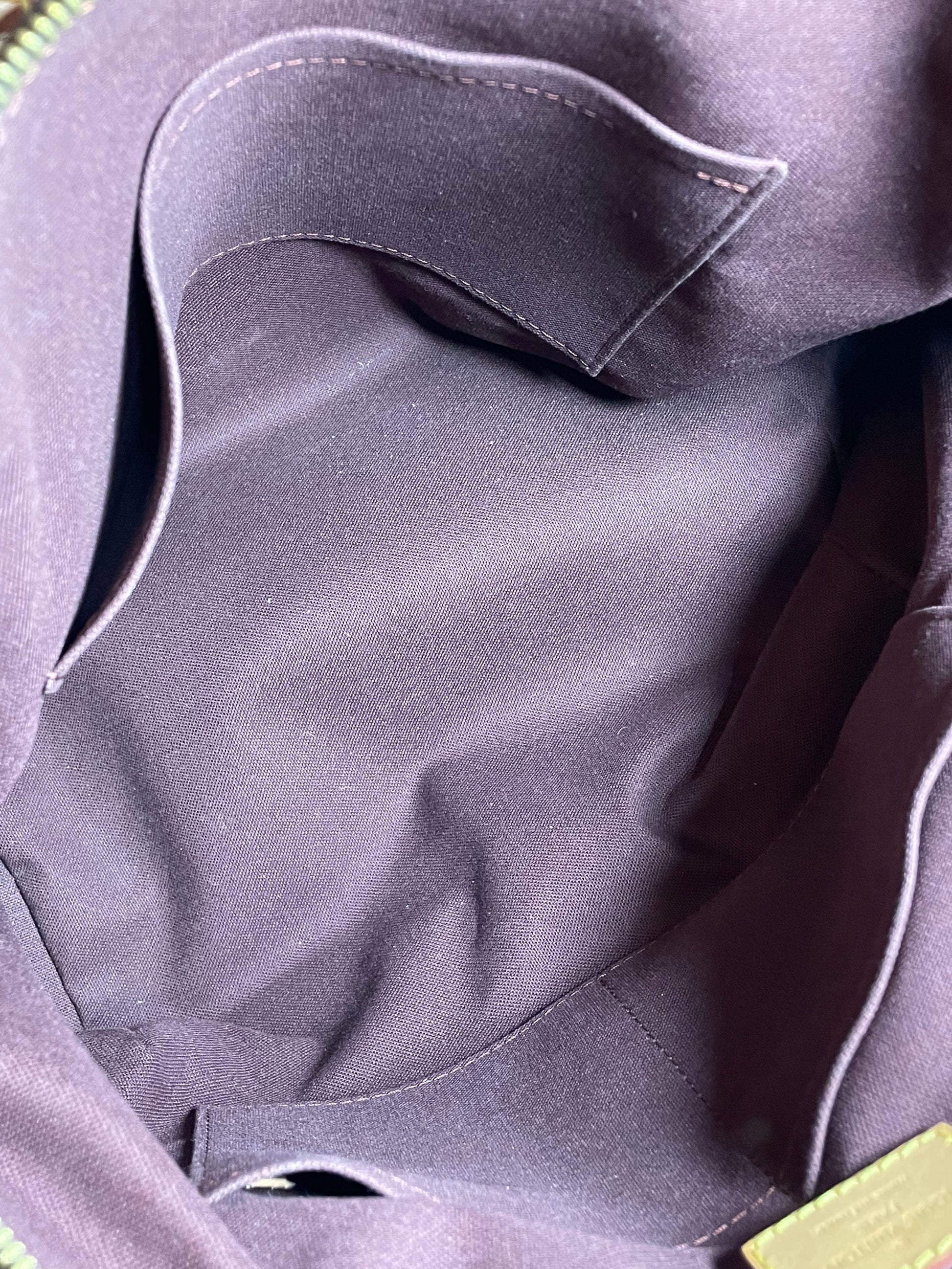 This is a beautiful bag in fantastic condition. The canvas is in lovely condition. The leather has developed a light patina with some darkening to the carry handles and water spots to the front tag. The carry strap has some creasing and darkening where the metal sits.
