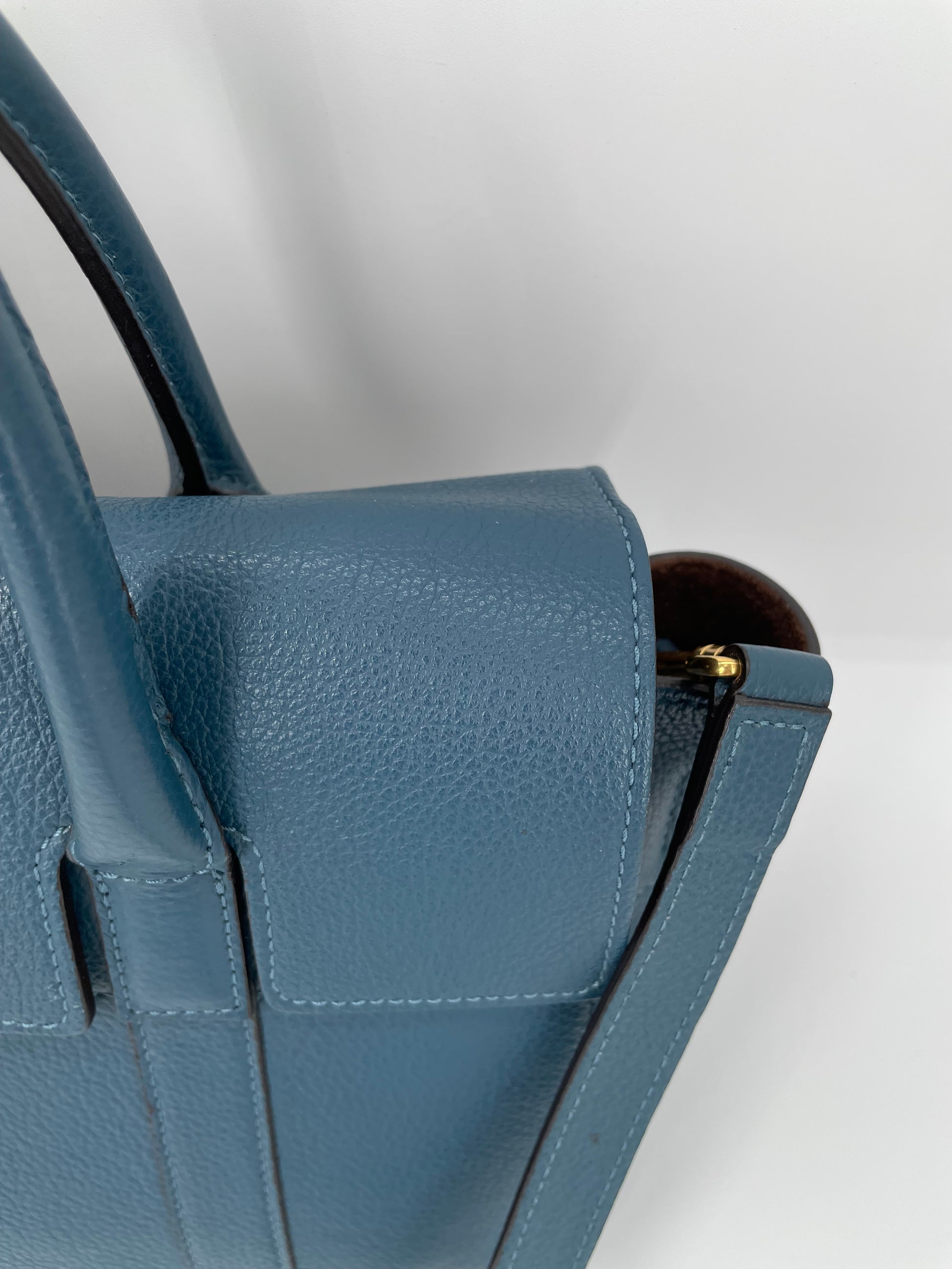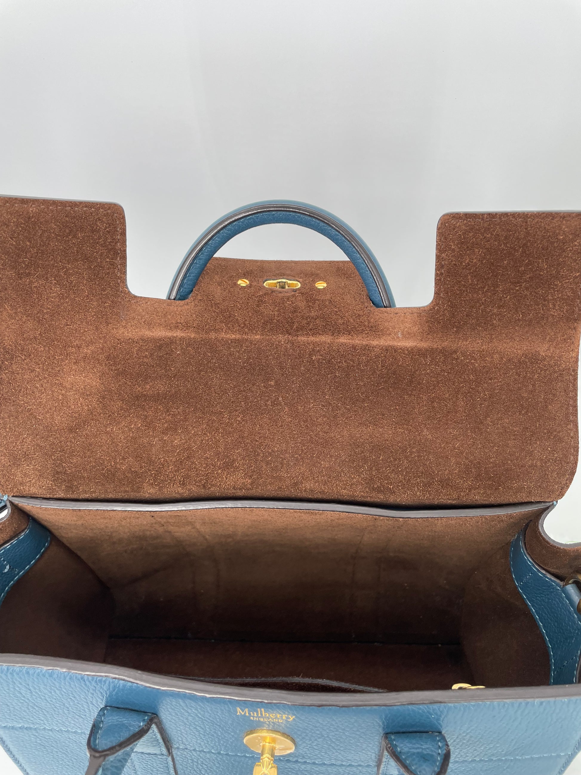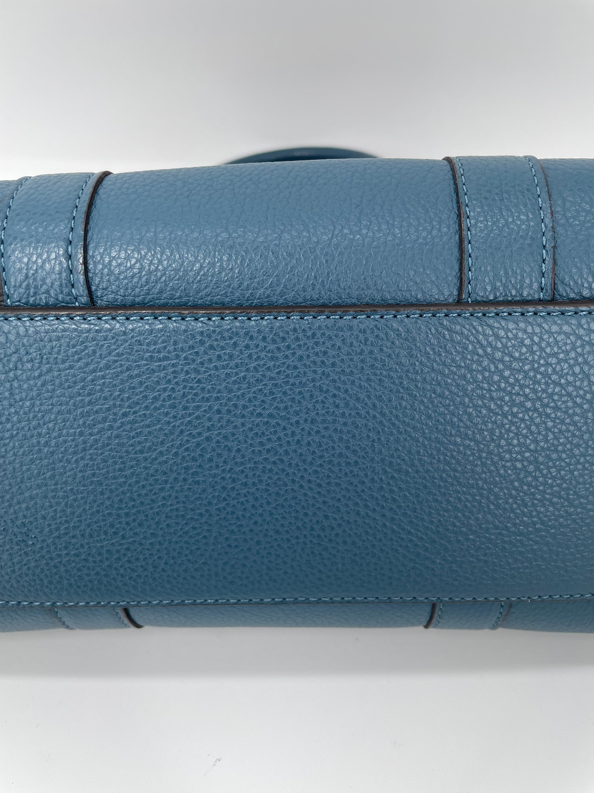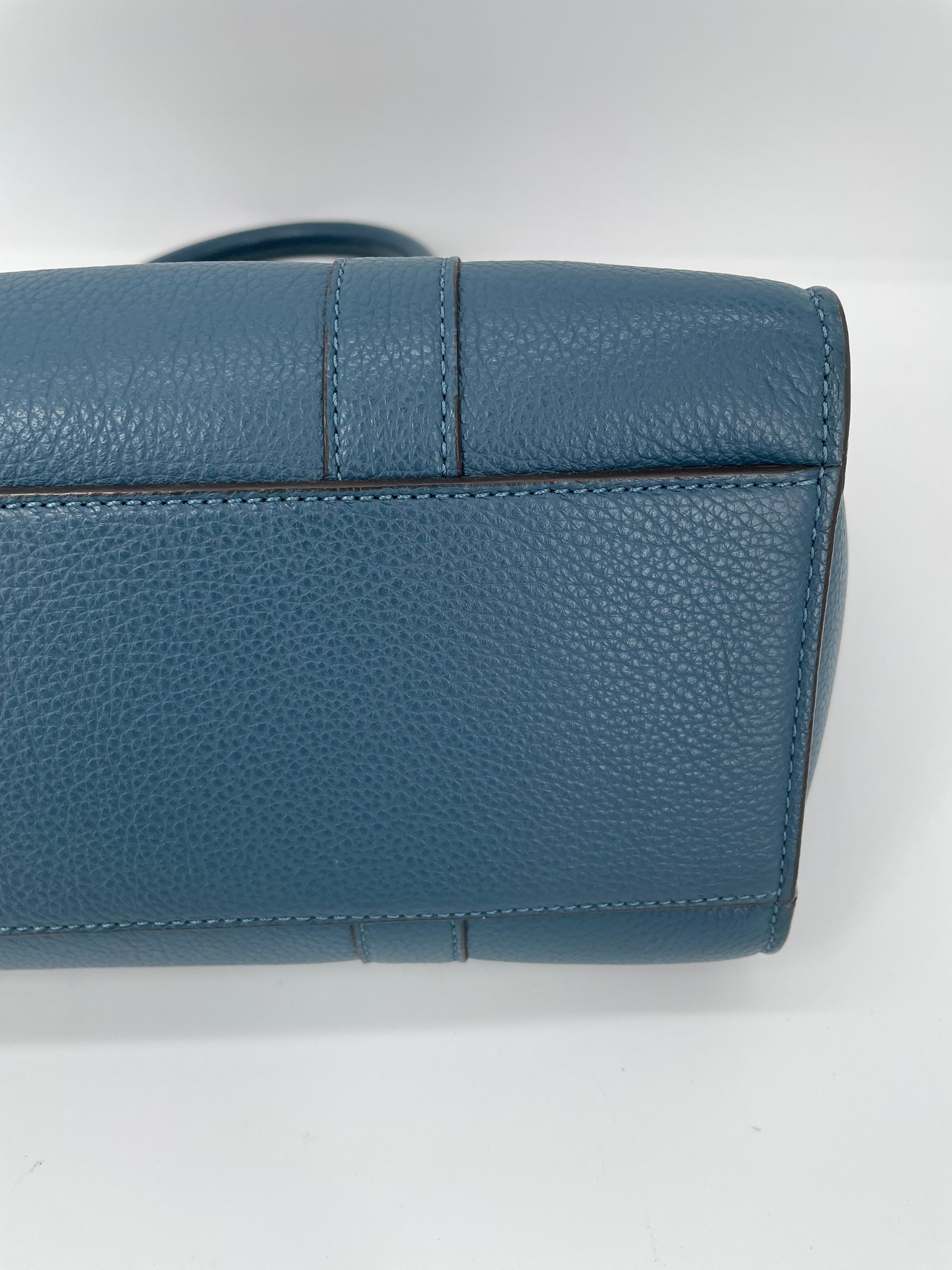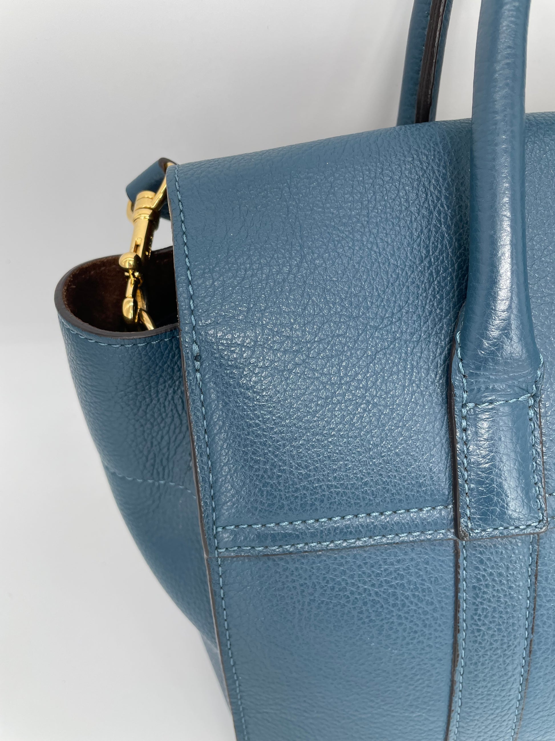 This is a beautiful small Mulberry Bayswater satchel bag in grainy deep blue leather and silvertone hardware (the colour is Deep Sea Blue) Smaller in size, this version has been thoughtfully constructed to ensure it can still hold all you need.