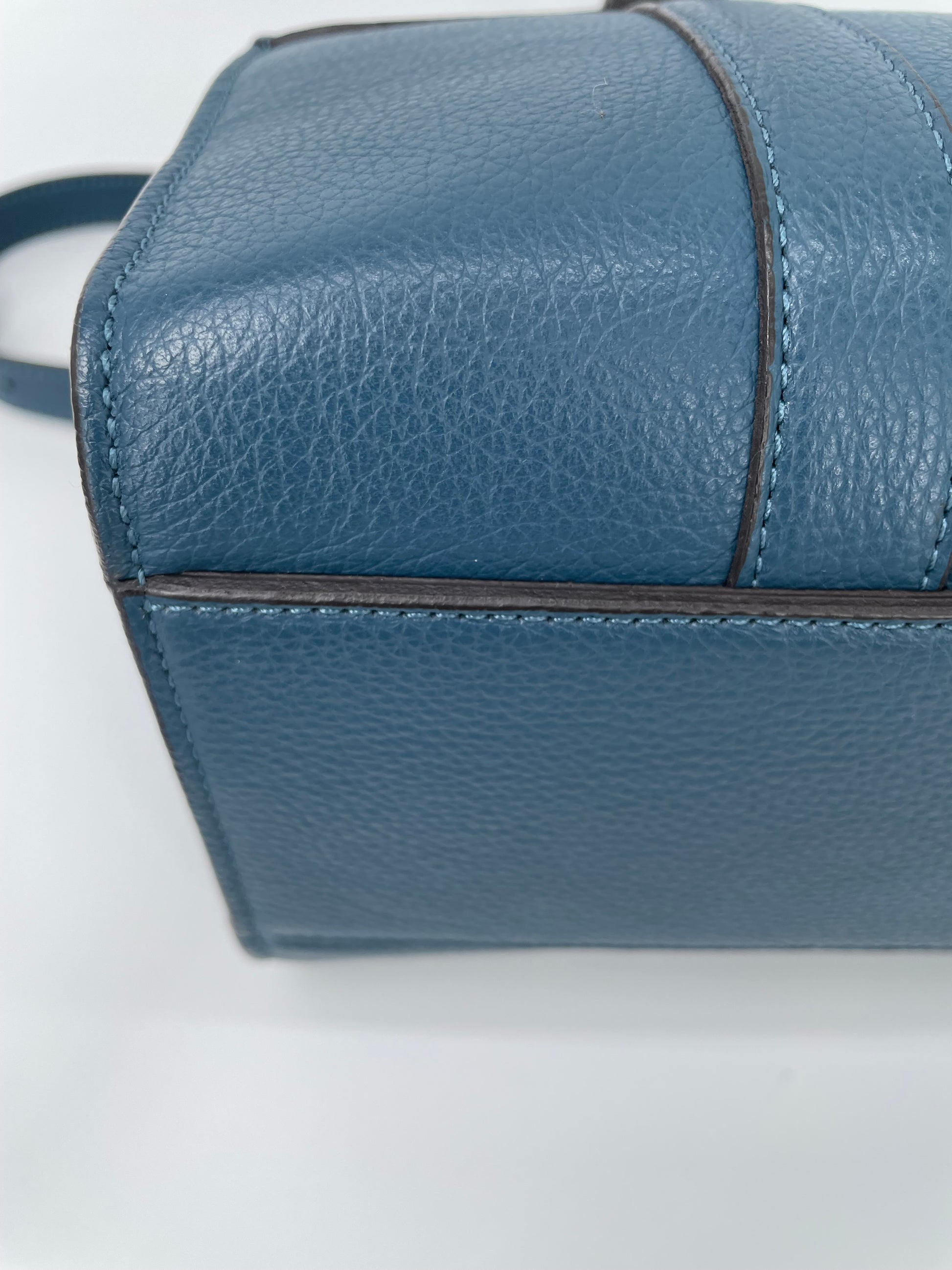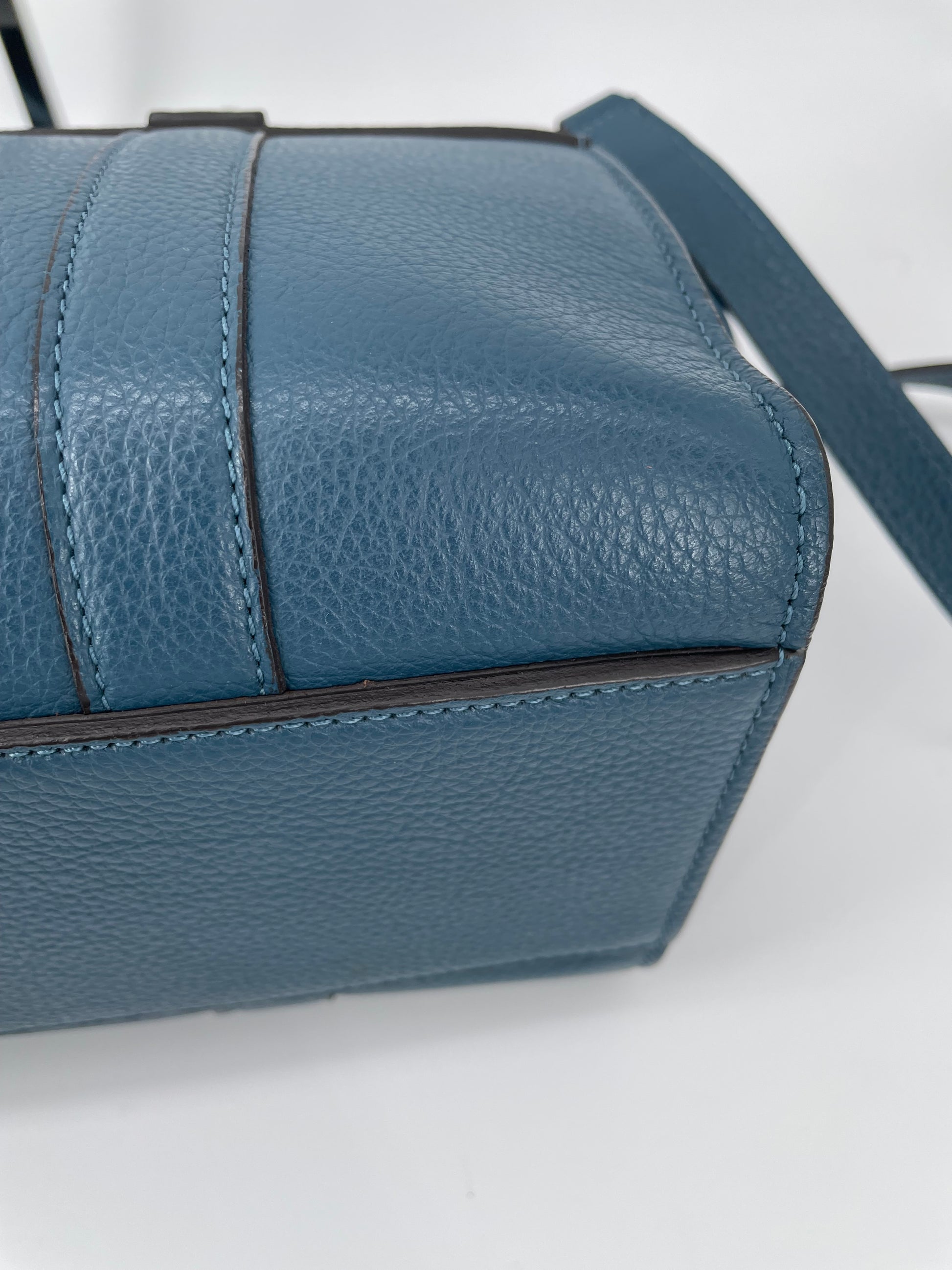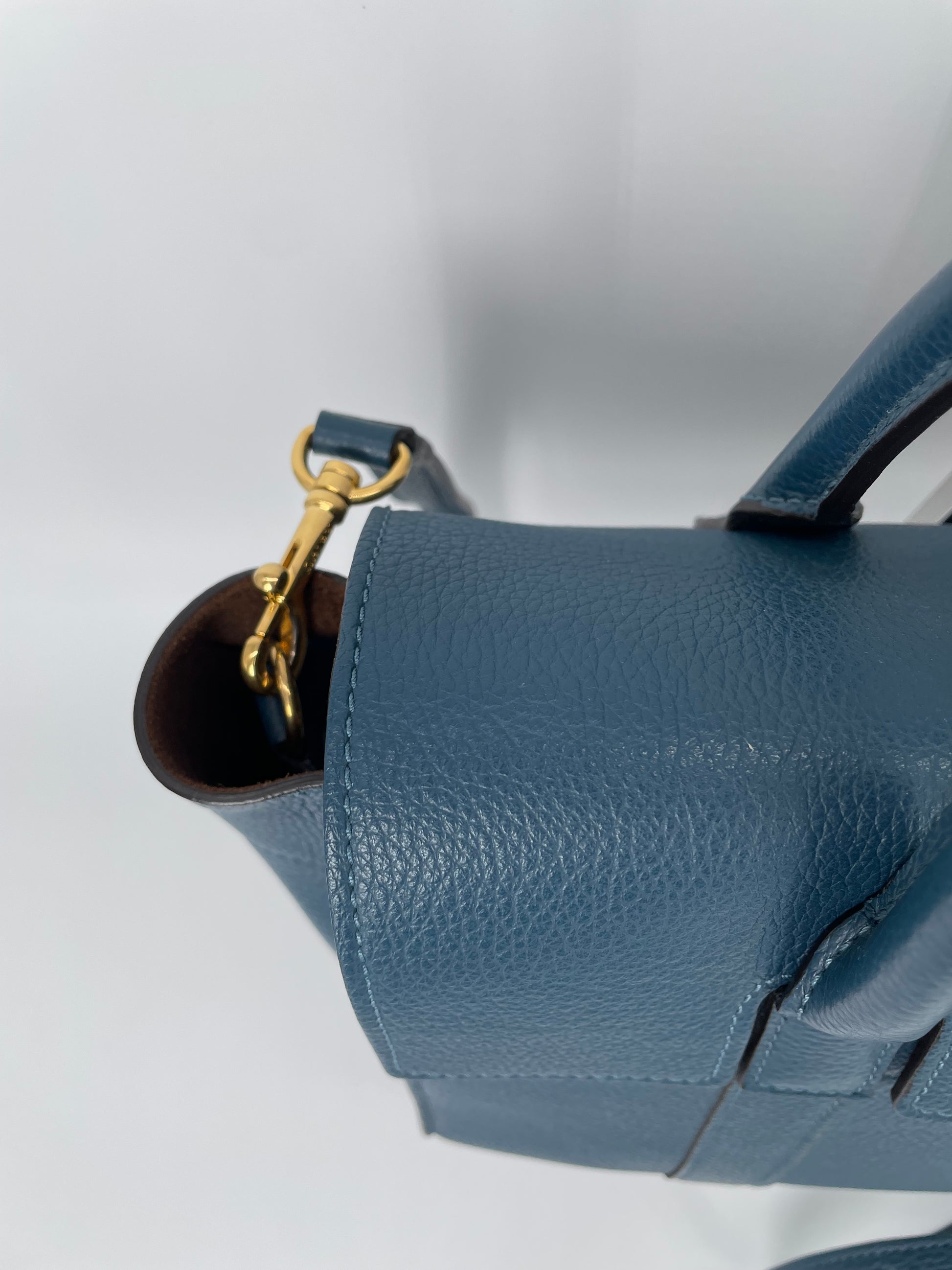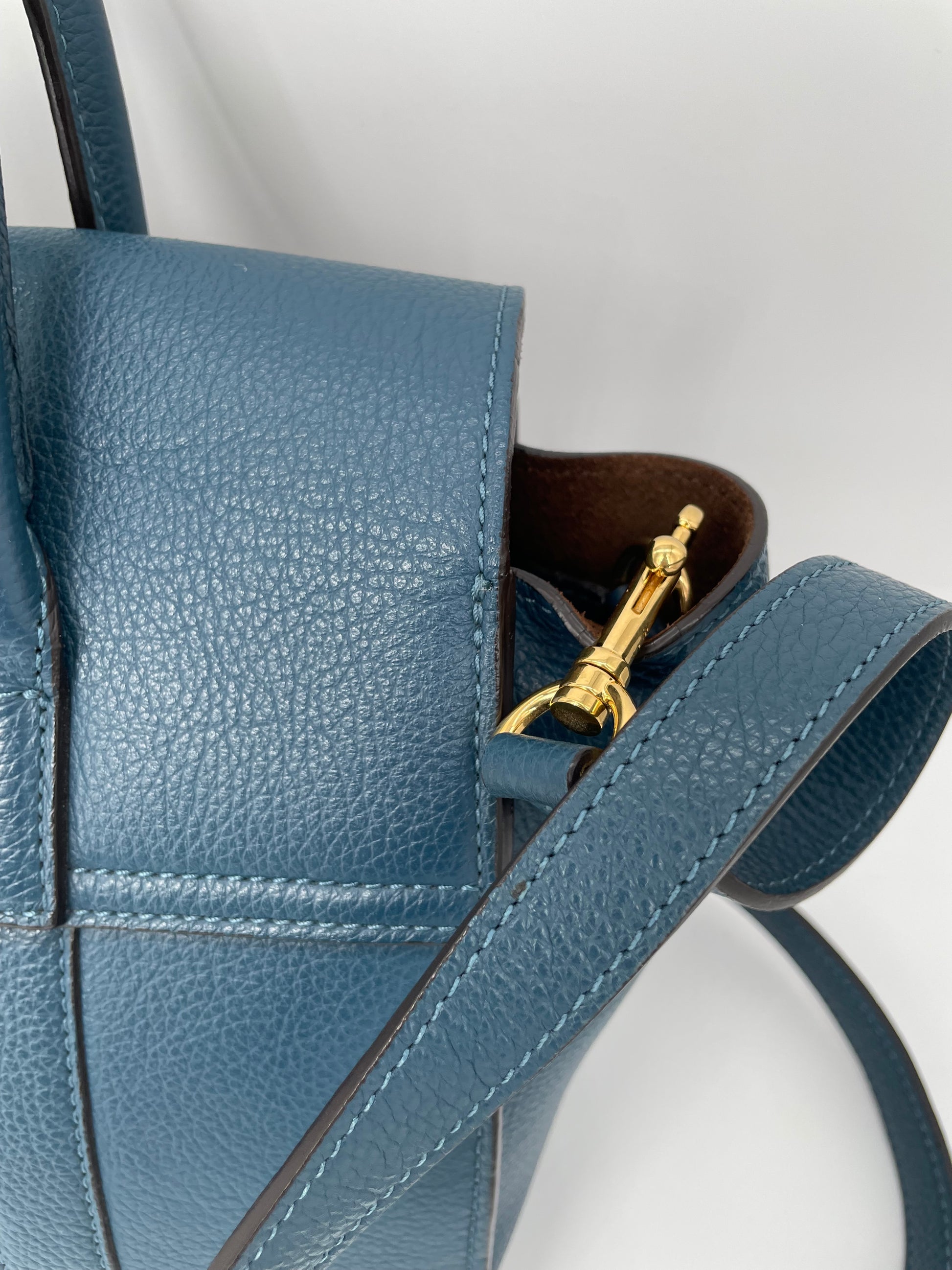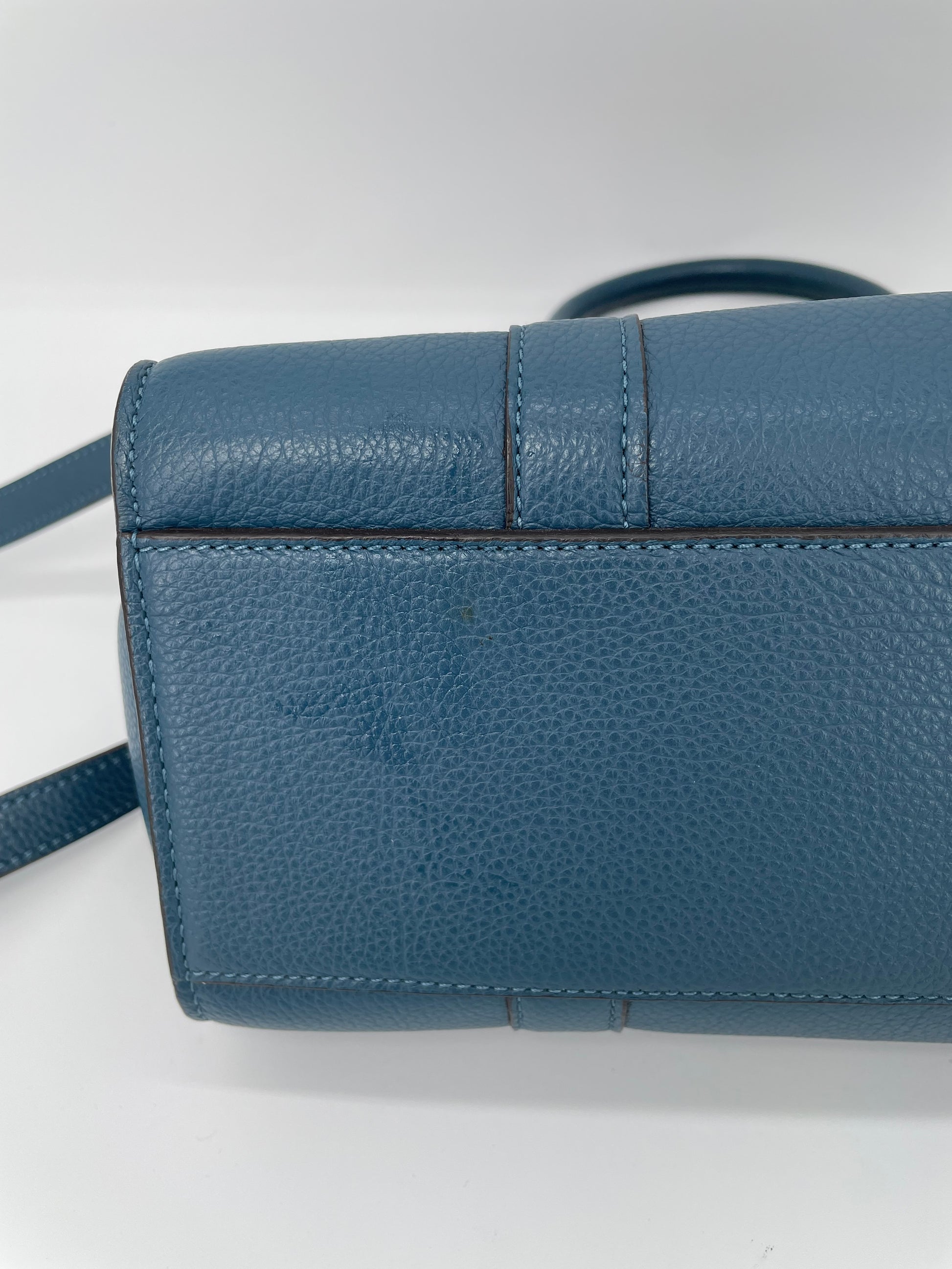 This is a beautiful small Mulberry Bayswater satchel bag in grainy deep blue leather and silvertone hardware (the colour is Deep Sea Blue) Smaller in size, this version has been thoughtfully constructed to ensure it can still hold all you need.