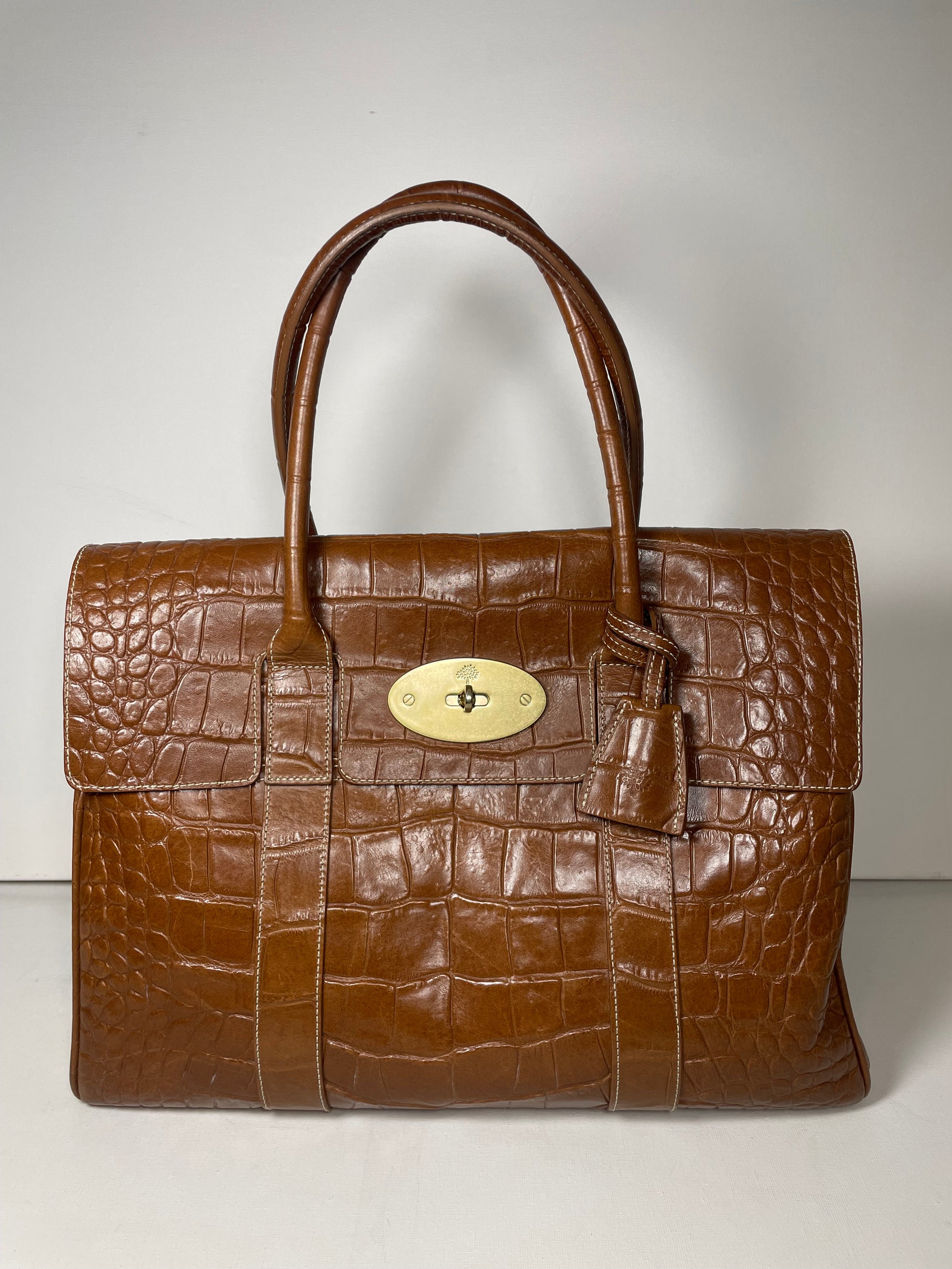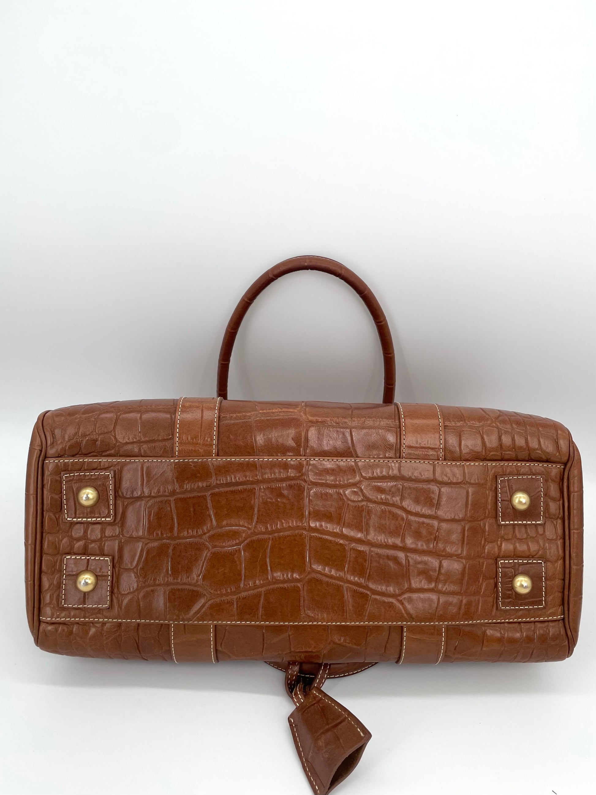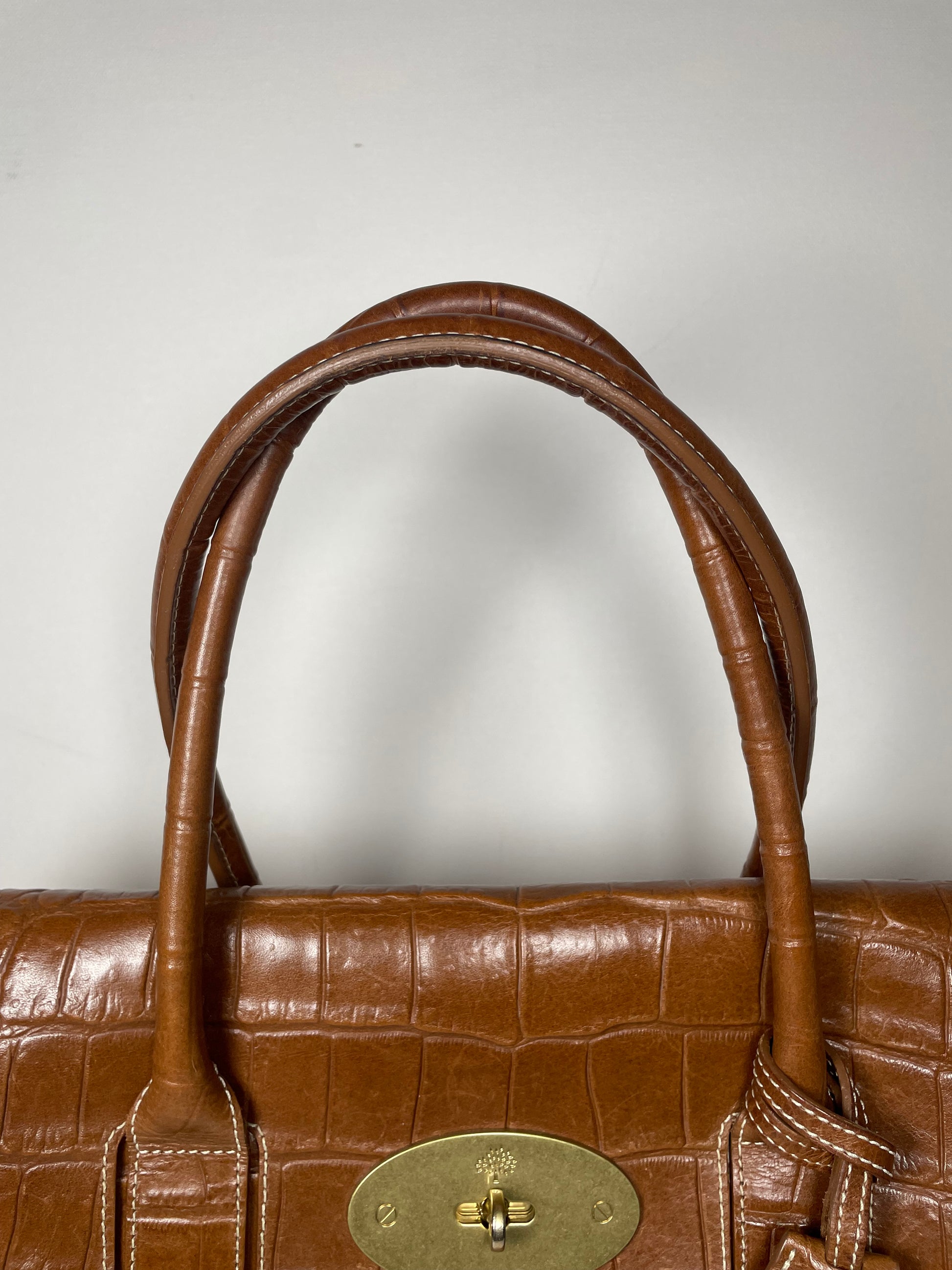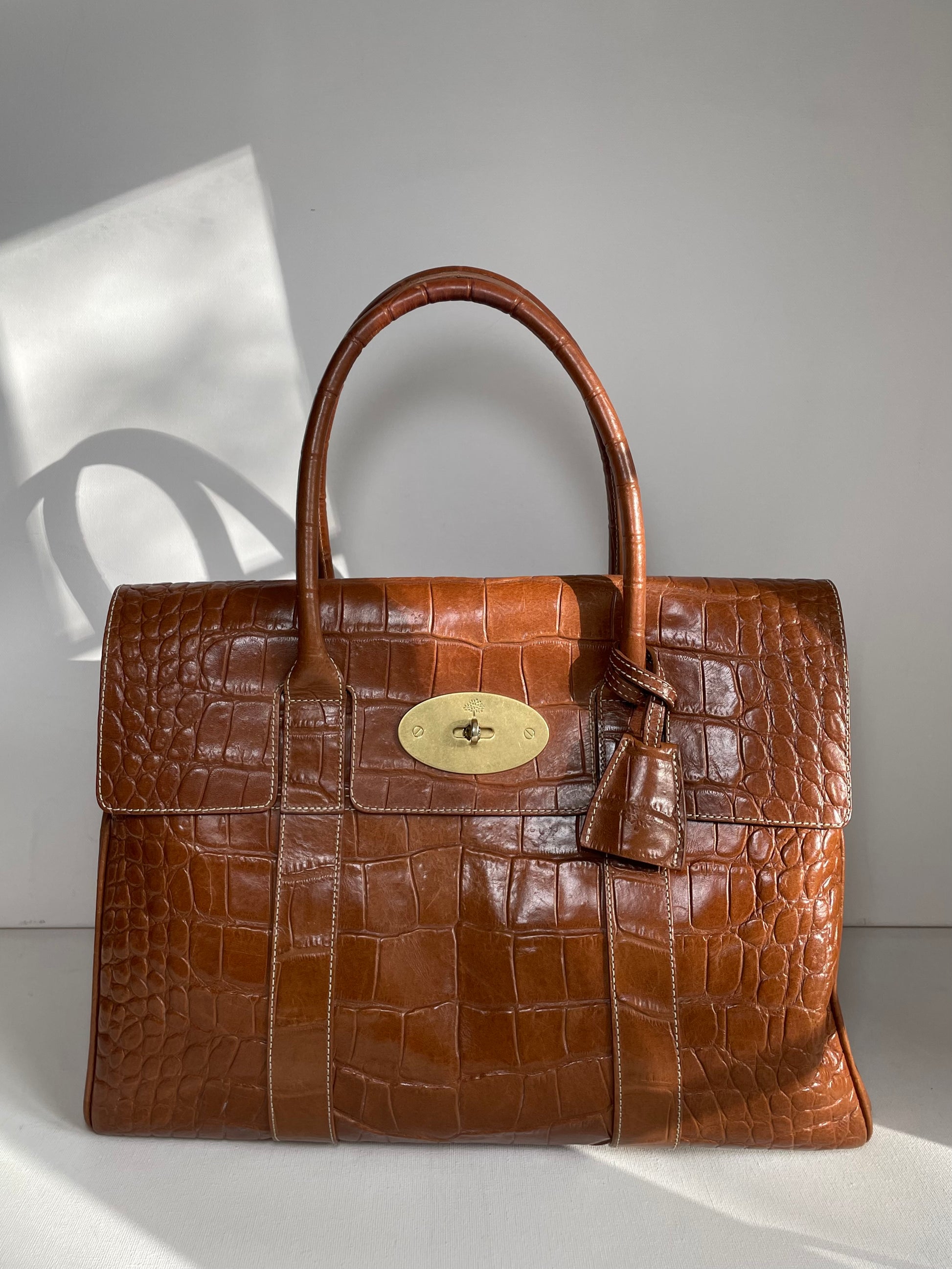 This is a lovely, Iconic Vintage Classic Heritage Mulberry Bayswater in Large. This Moc Croc leather bag in Oak is crafted from hardwearing leather that allows the structure to be maintained beautifully. This is an iconic silhouette, its simple structure, timeless design and signature postman's lock make it instantly recognisable. The front flap opens to an unlined suede interior with a secure zipped pocket and two open slip pockets .
