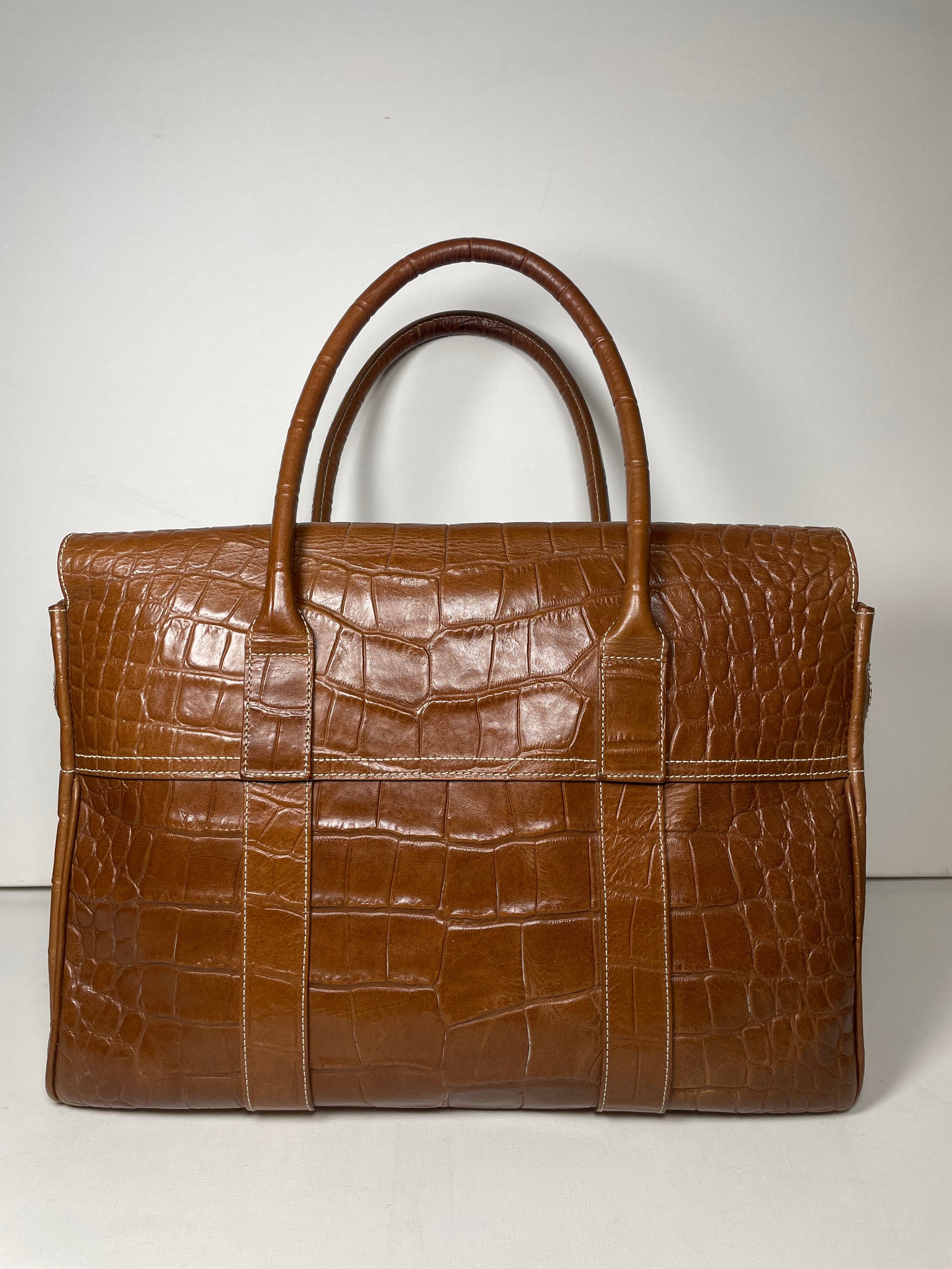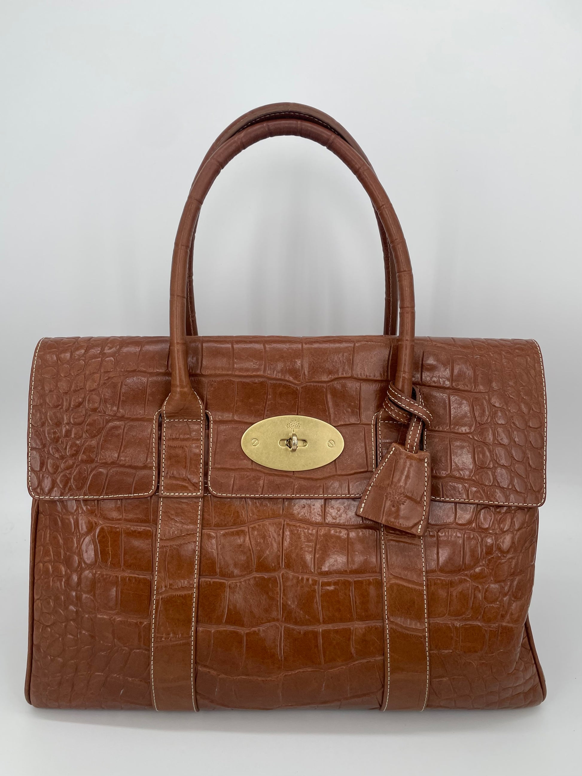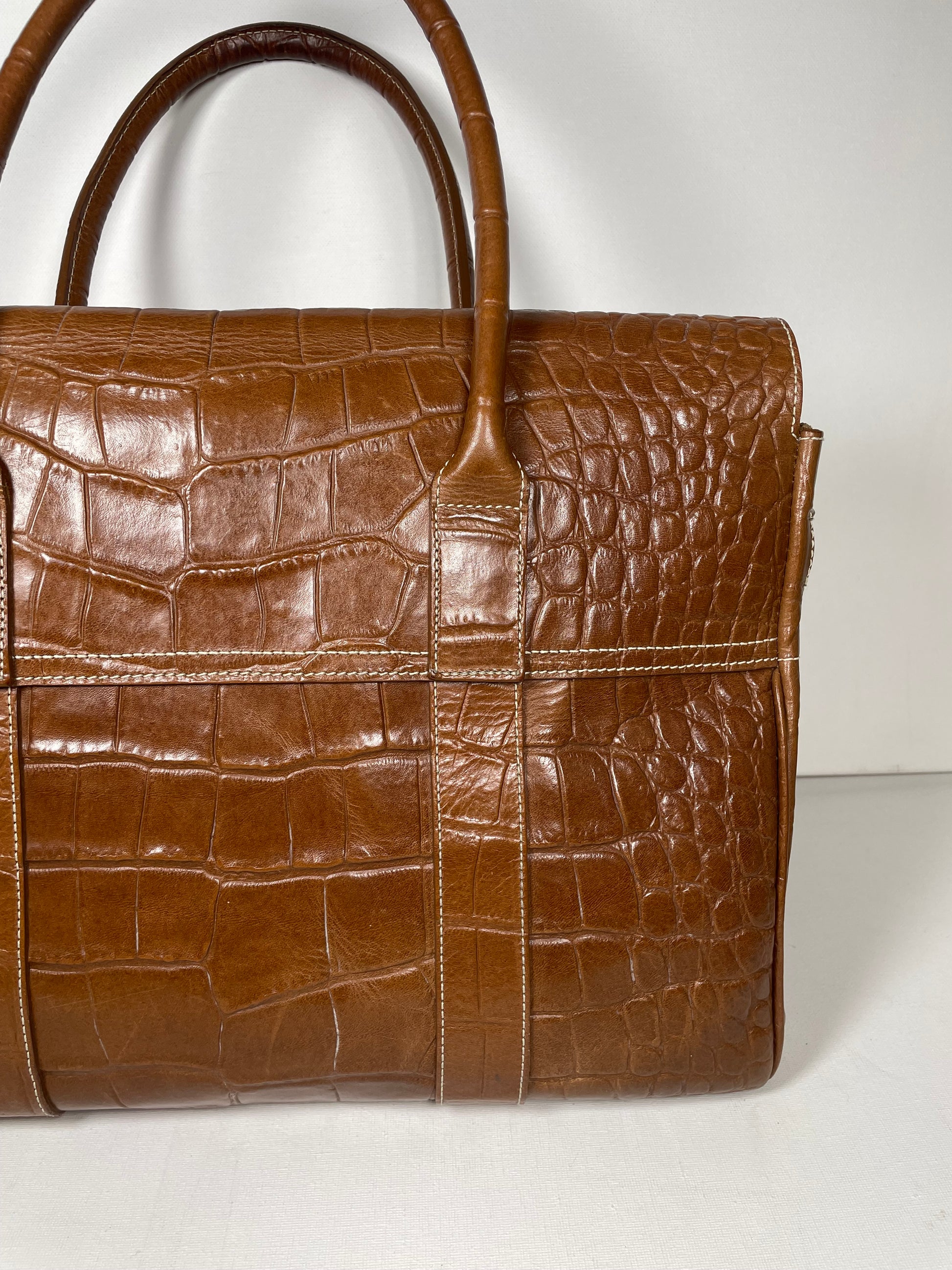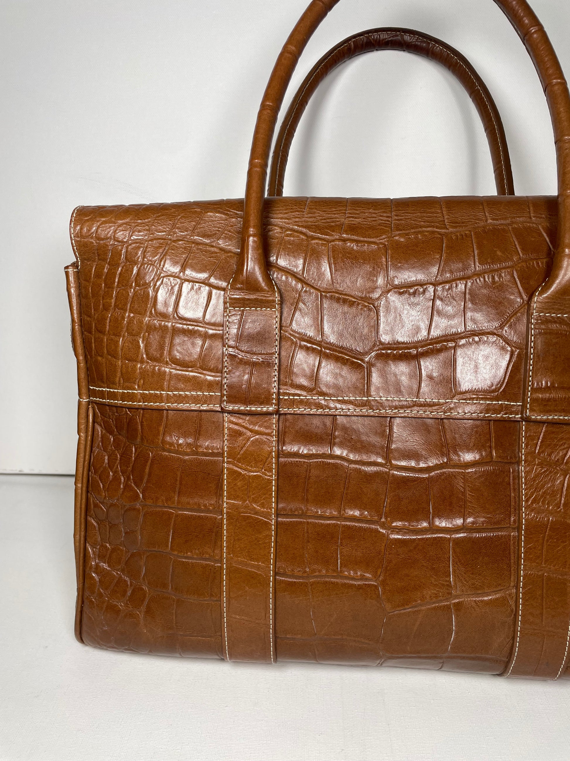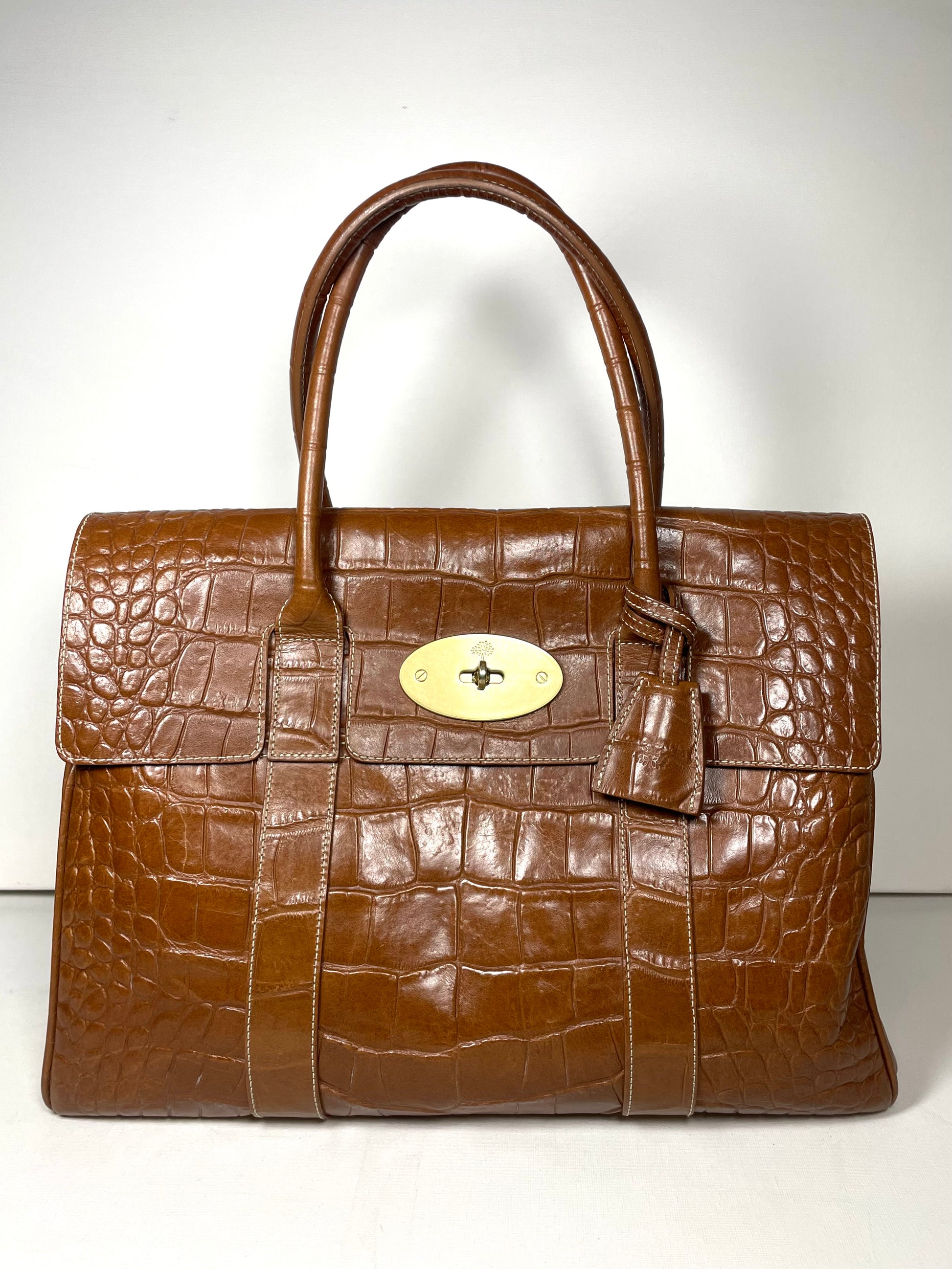 This is a lovely, Iconic Vintage Classic Heritage Mulberry Bayswater in Large. This Moc Croc leather bag in Oak is crafted from hardwearing leather that allows the structure to be maintained beautifully. This is an iconic silhouette, its simple structure, timeless design and signature postman's lock make it instantly recognisable. The front flap opens to an unlined suede interior with a secure zipped pocket and two open slip pockets .