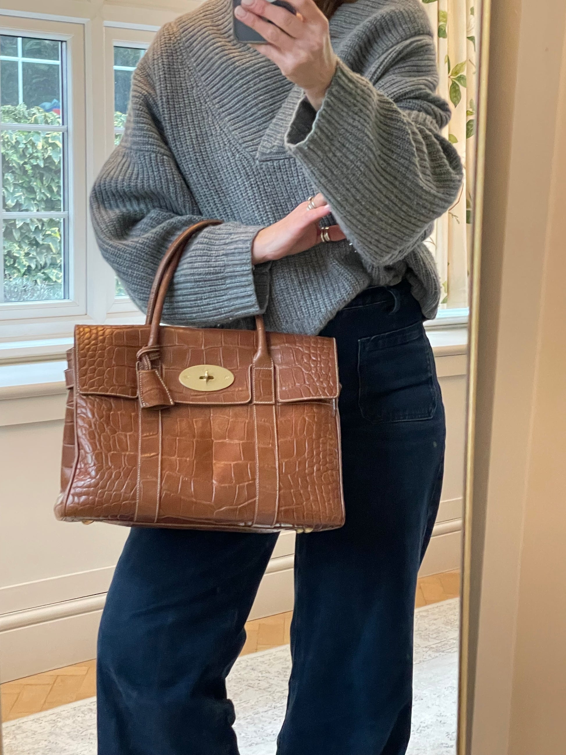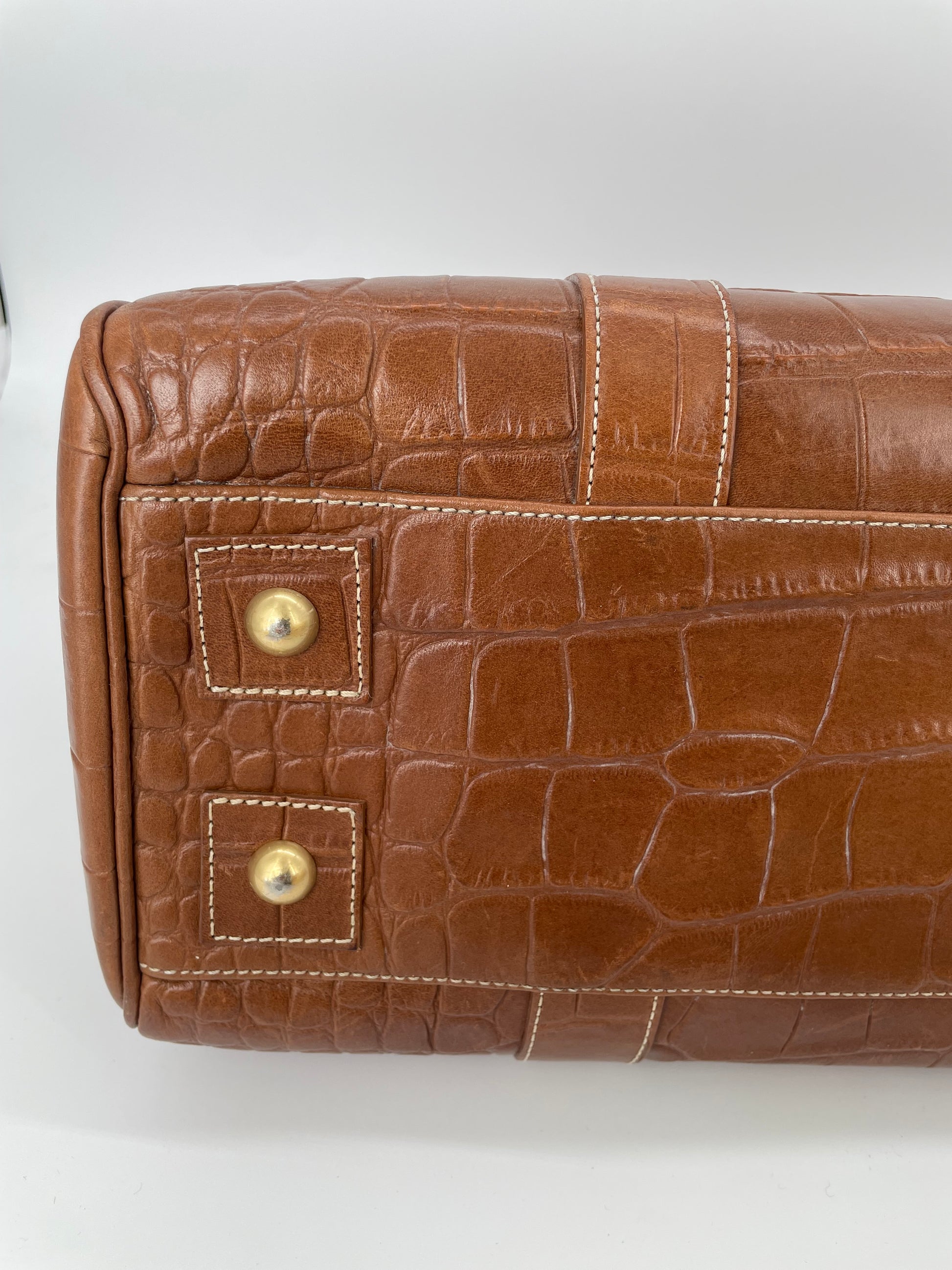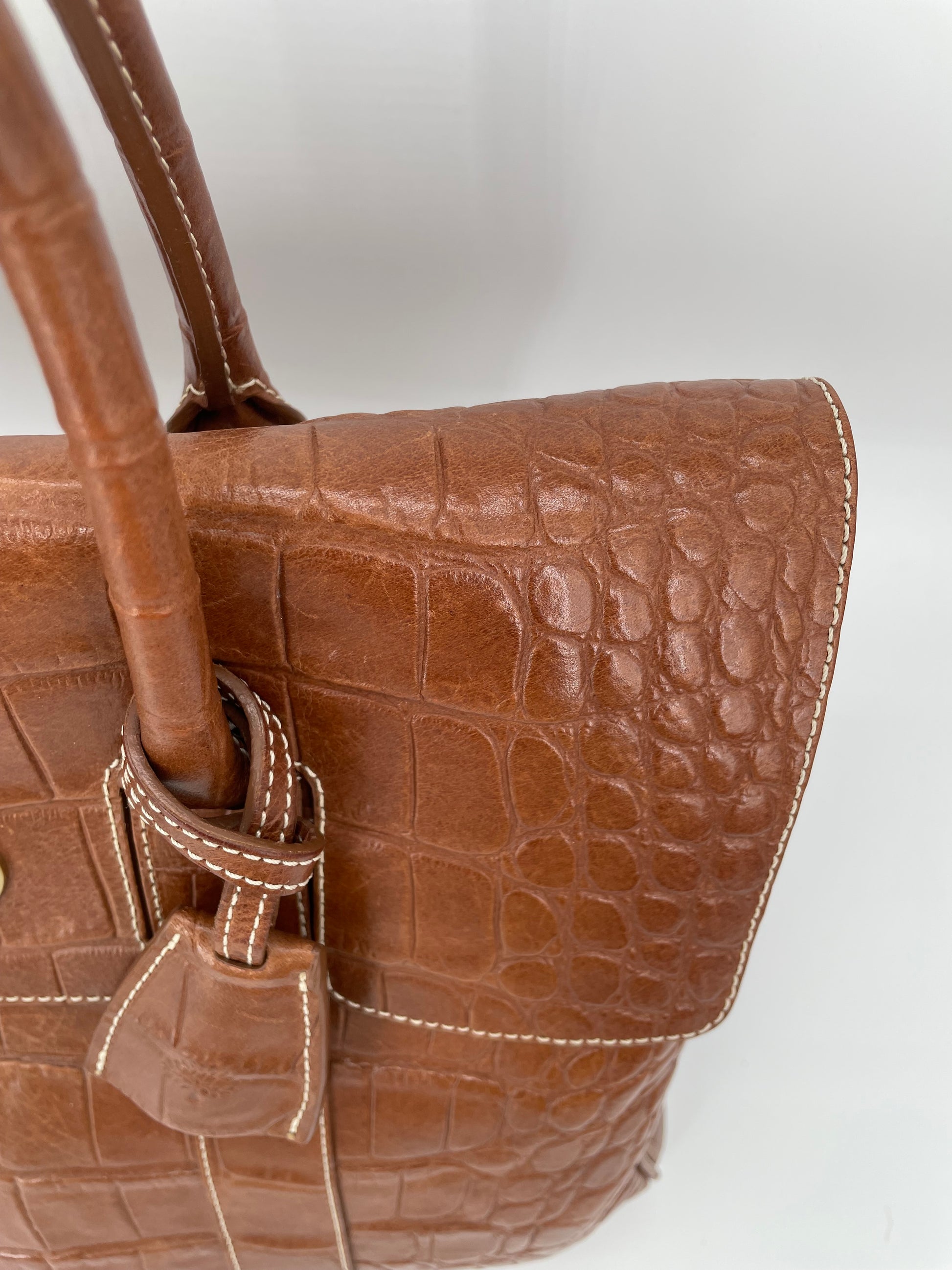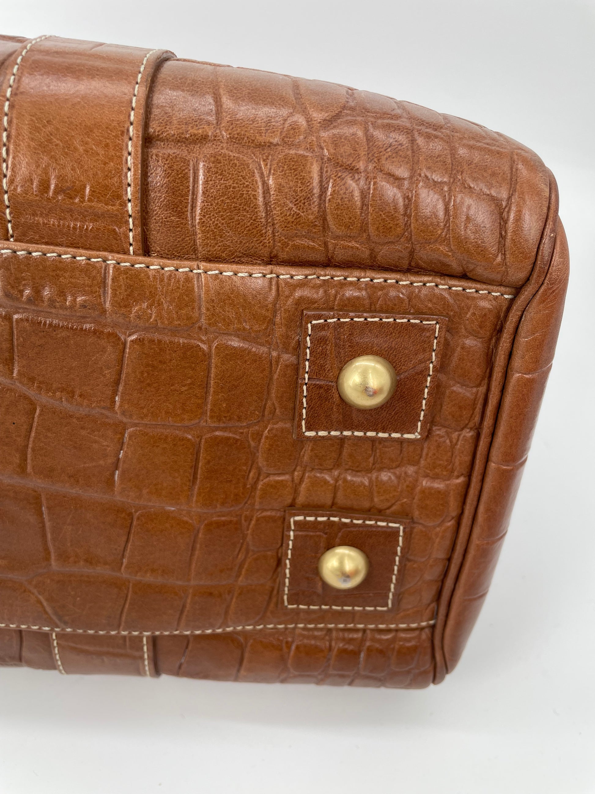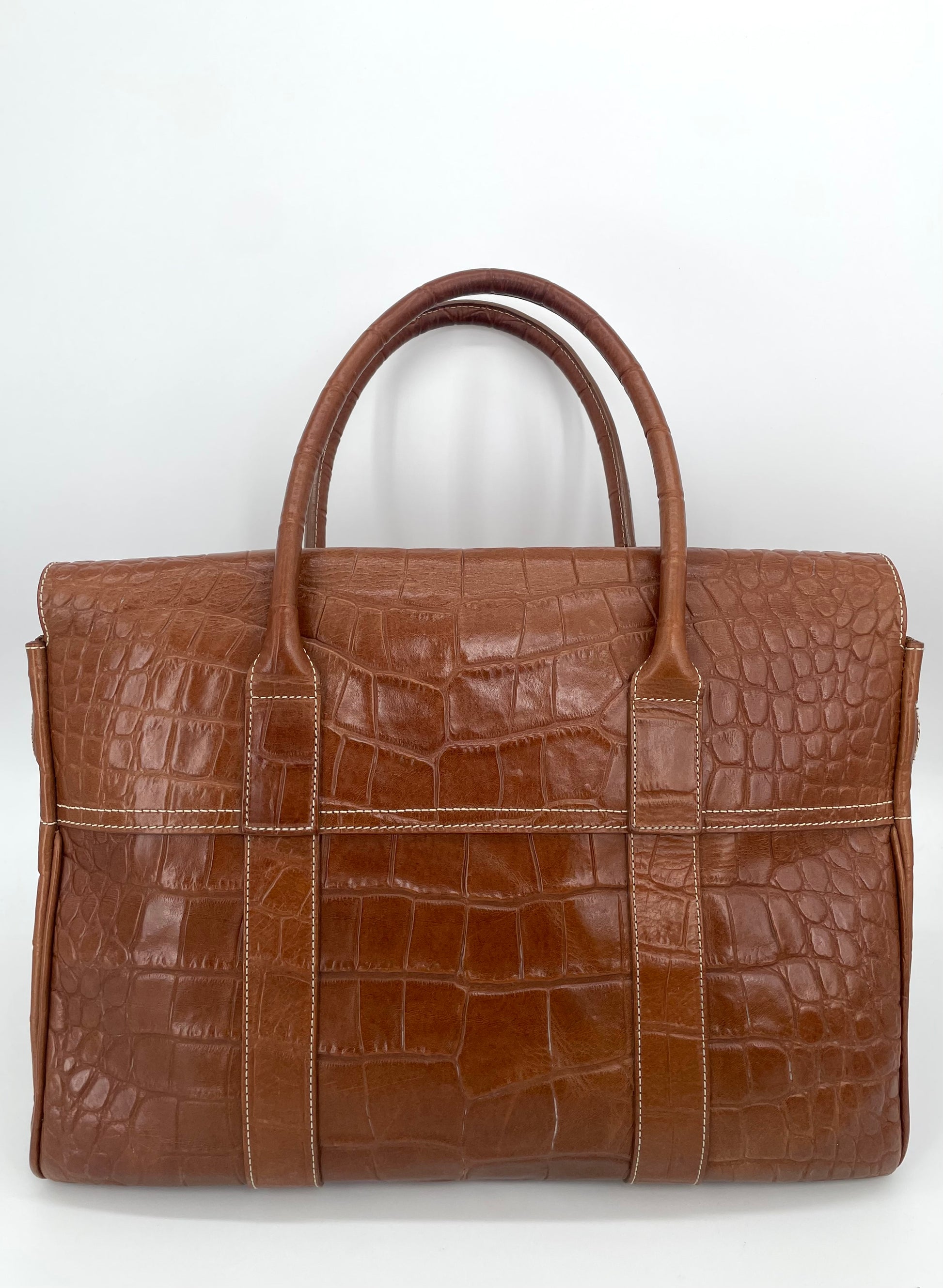 This is a lovely, Iconic Vintage Classic Heritage Mulberry Bayswater in Large. This Moc Croc leather bag in Oak is crafted from hardwearing leather that allows the structure to be maintained beautifully. This is an iconic silhouette, its simple structure, timeless design and signature postman's lock make it instantly recognisable. The front flap opens to an unlined suede interior with a secure zipped pocket and two open slip pockets .