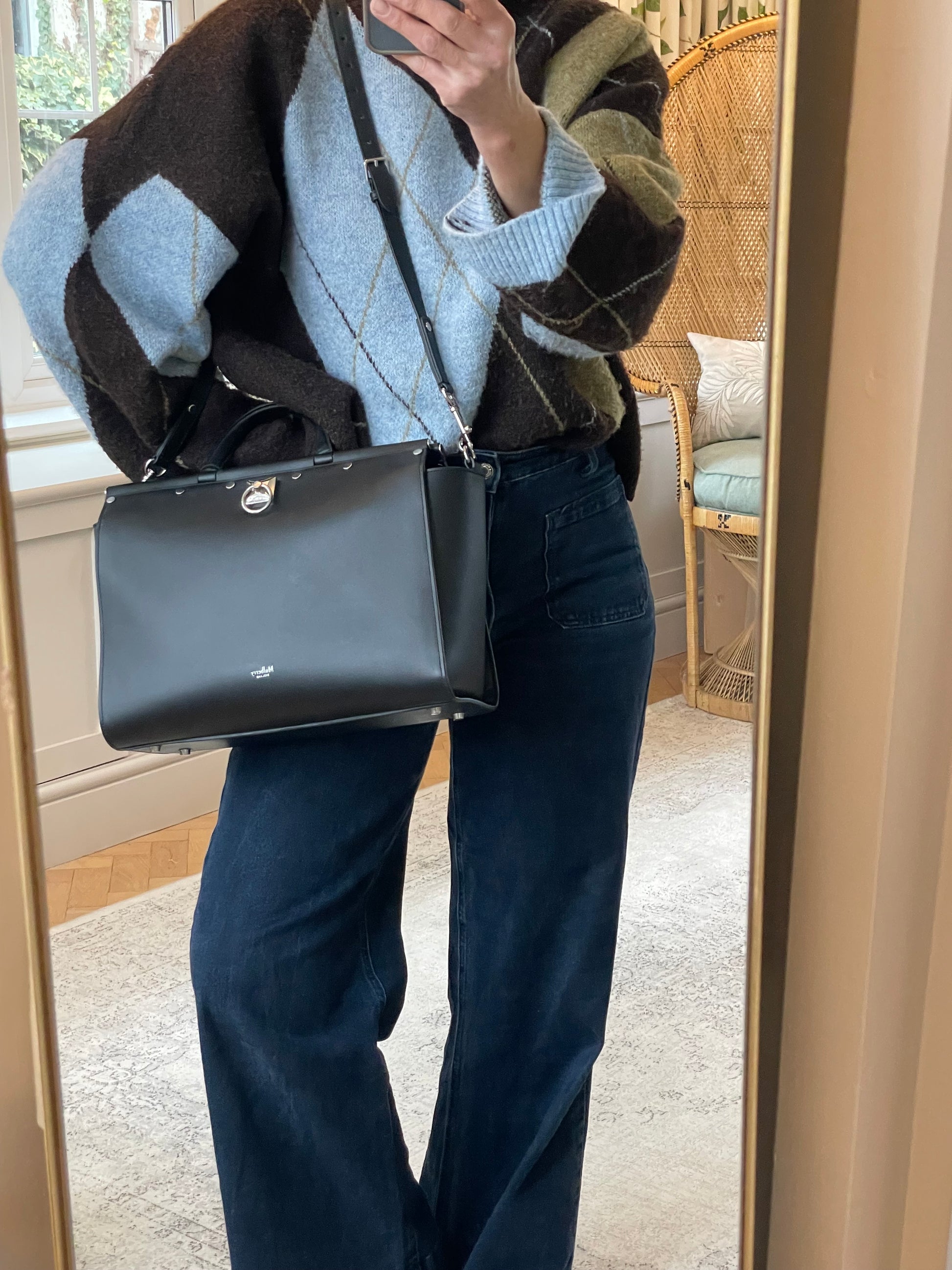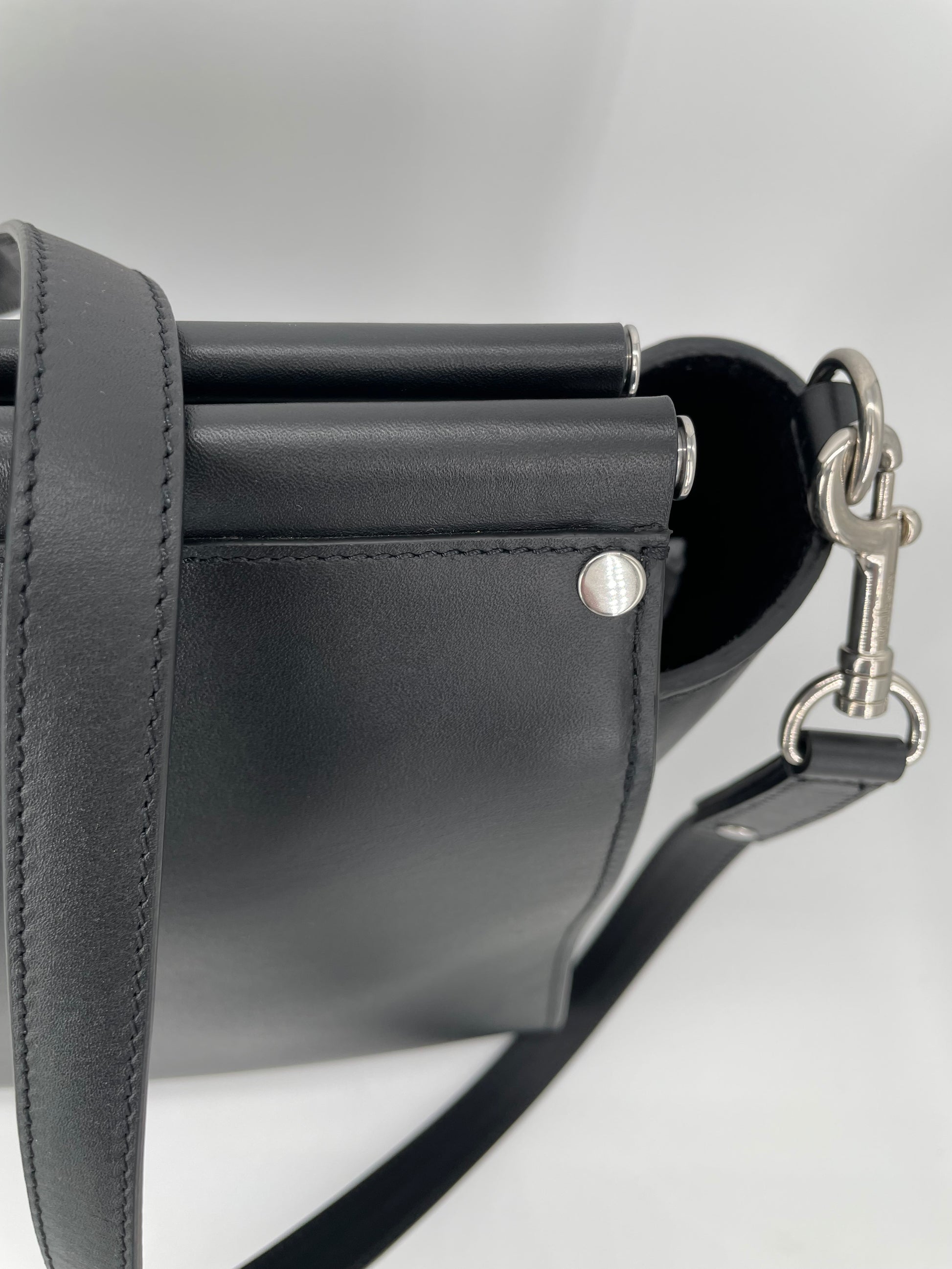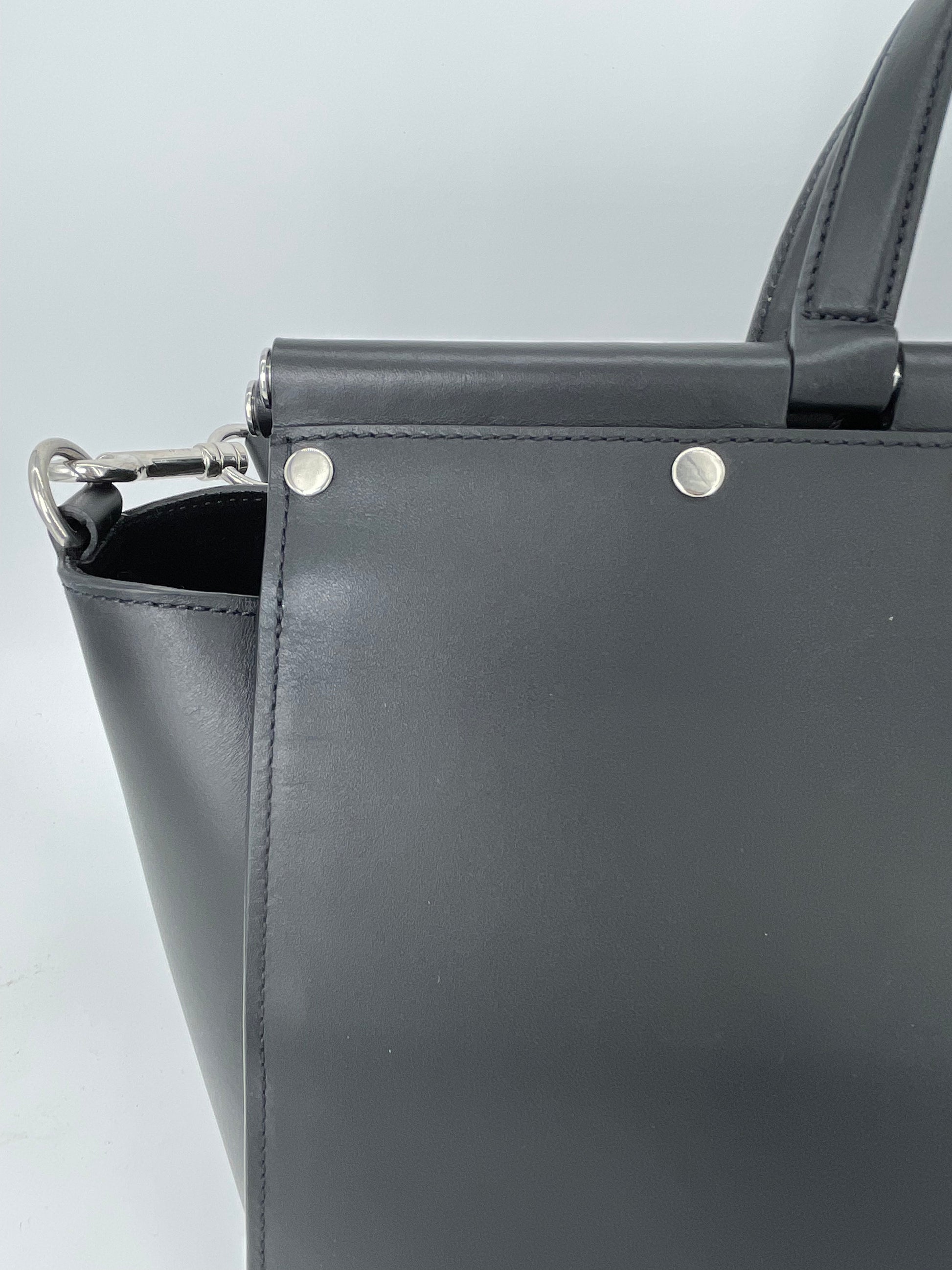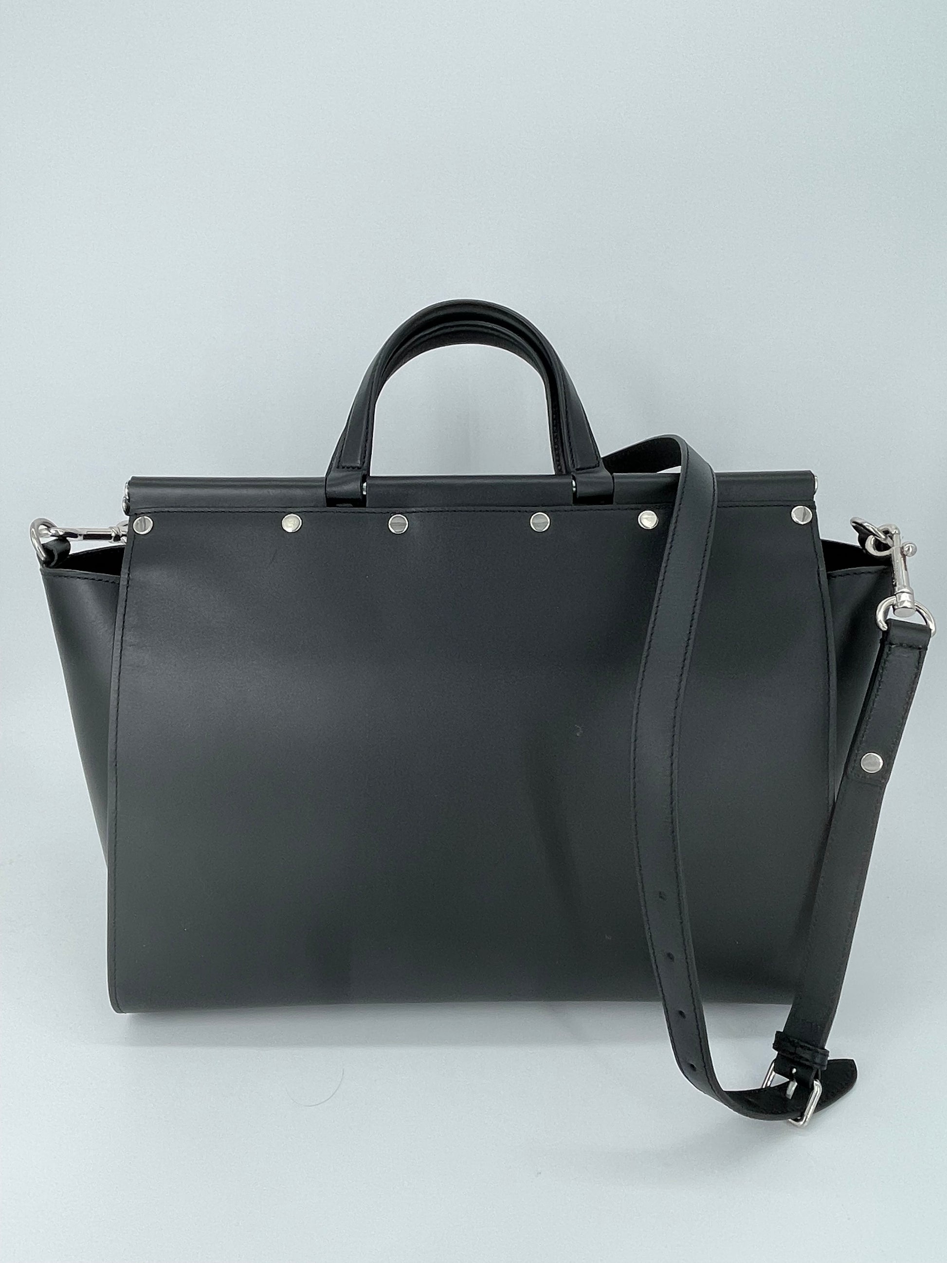 This is an absolutely beautiful Medium Mulberry Iris Top Handle Flat Stud Bag in sleek black leather. This is a sophisticated and structured bag perfect for anytime. The structured day with the contrasting silvertone hardware for day-to-day activities. The eyelet stud detailing and metal rod top pull opening means it’s a striking and elegant bag. The large interior unlined suede compartment and open slip pocket means it’s an easy bag to use.