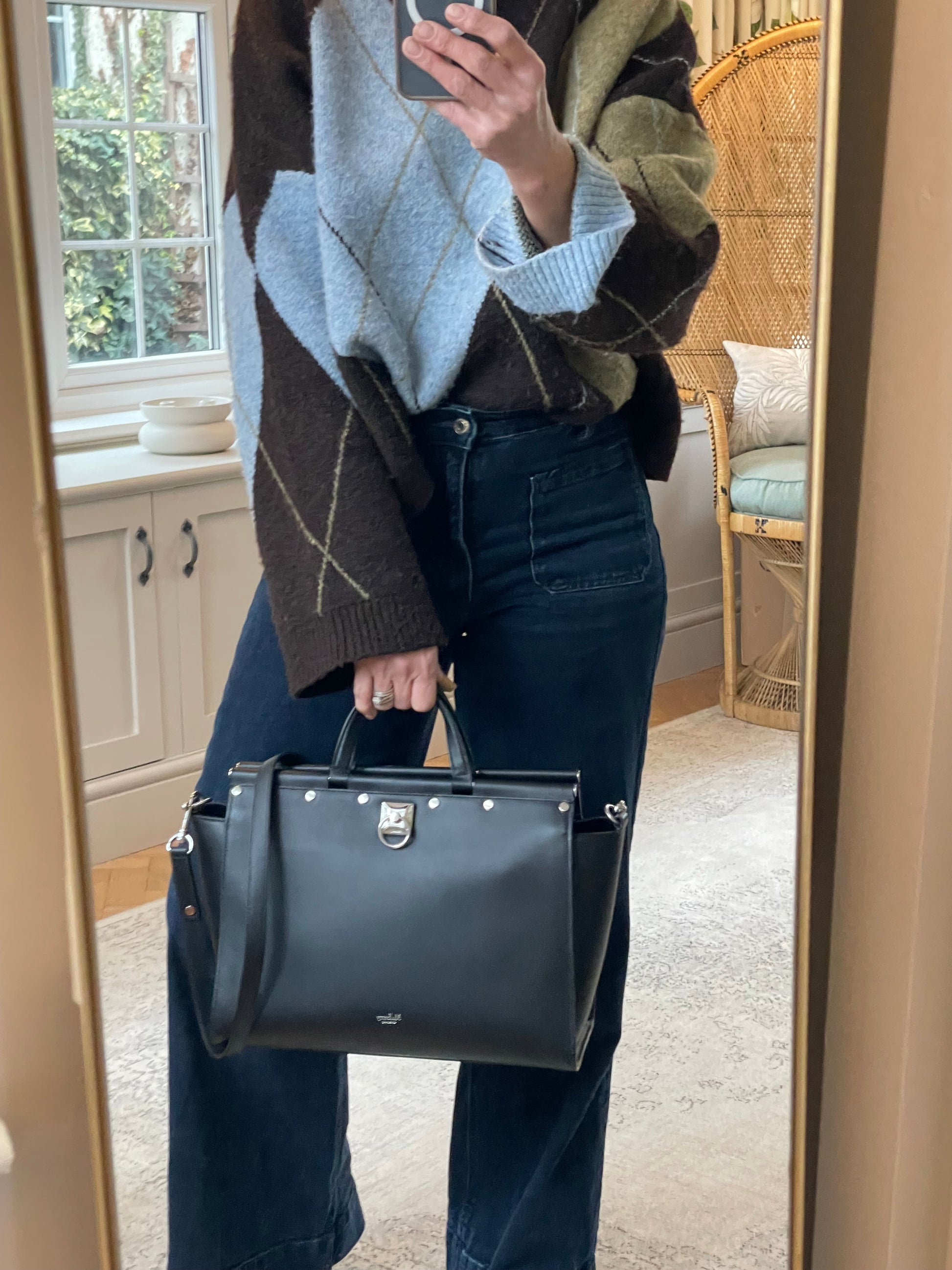 Preloved Mulberry Iris Top Handle Flat Stud Tote Bag with Long Strap