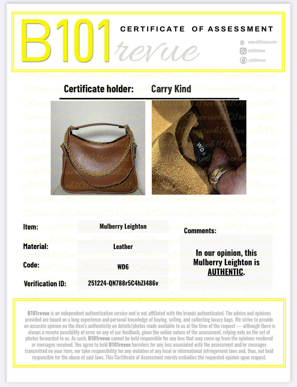 Comes with Dustbag, cards, product card and a certificate confirming authenticity.