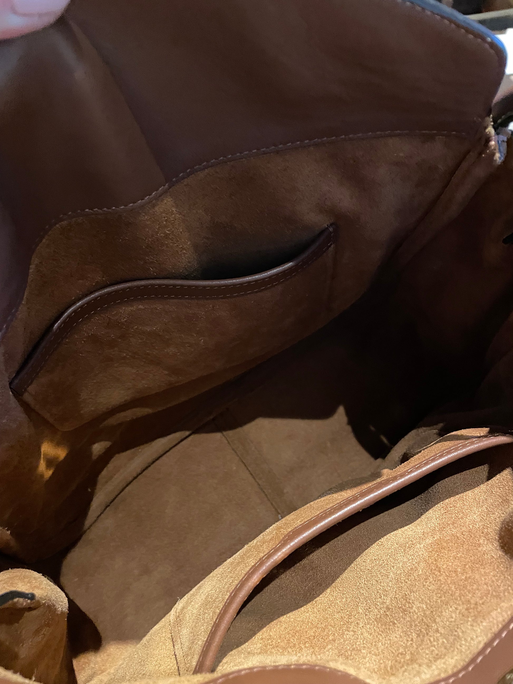 This is a beautiful bag in lovely condition. Minor creasing to the leather. The hardware still has some of the plastic hardware protector stickers in place. Interior is clean and in great condition.