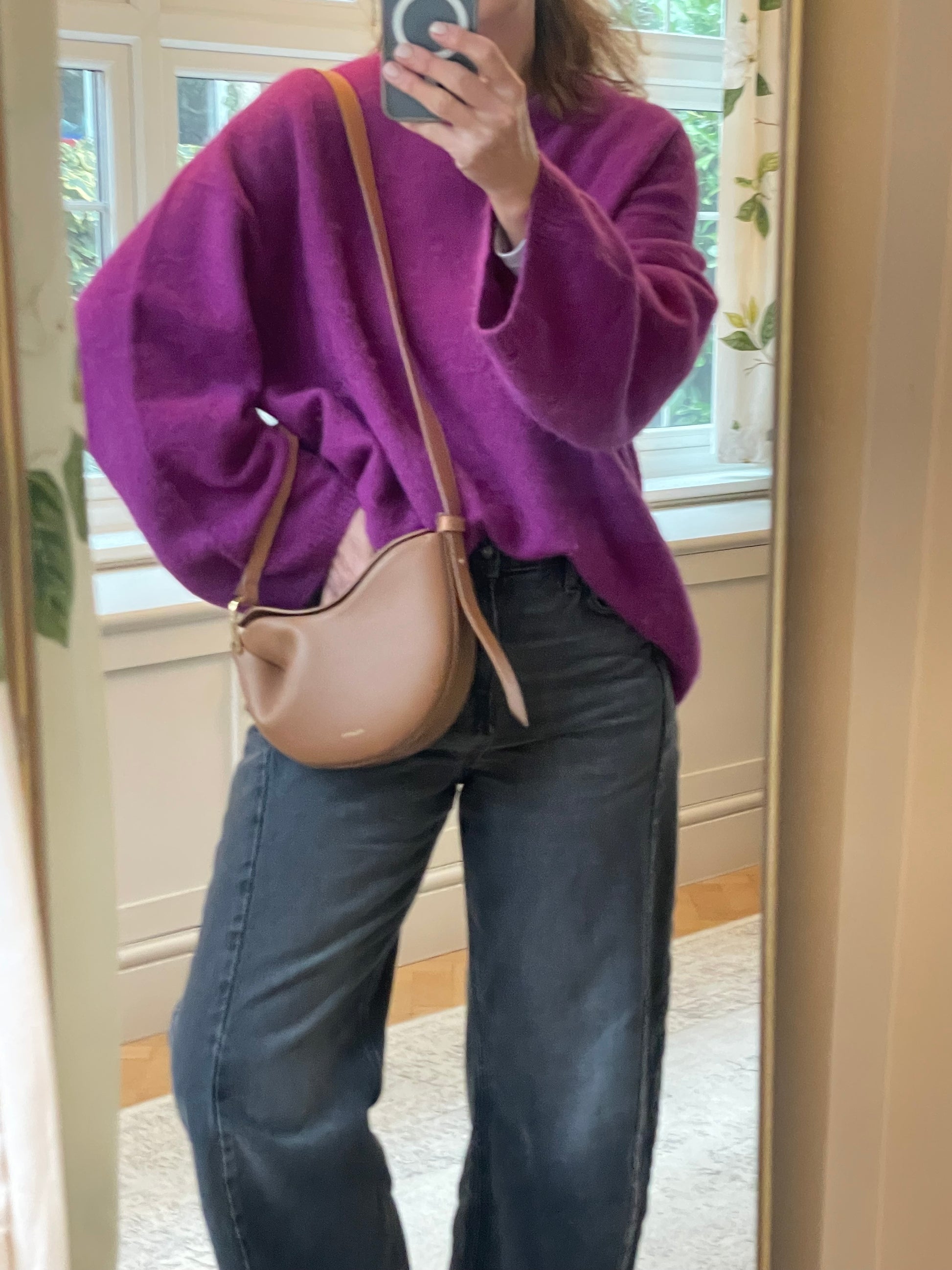 This is a lovely bag in great condition inside and out. Inside is clean and in great condition. Exterior has softening to the leather strap and creasing to the leather. Minor scratches to the hardware.