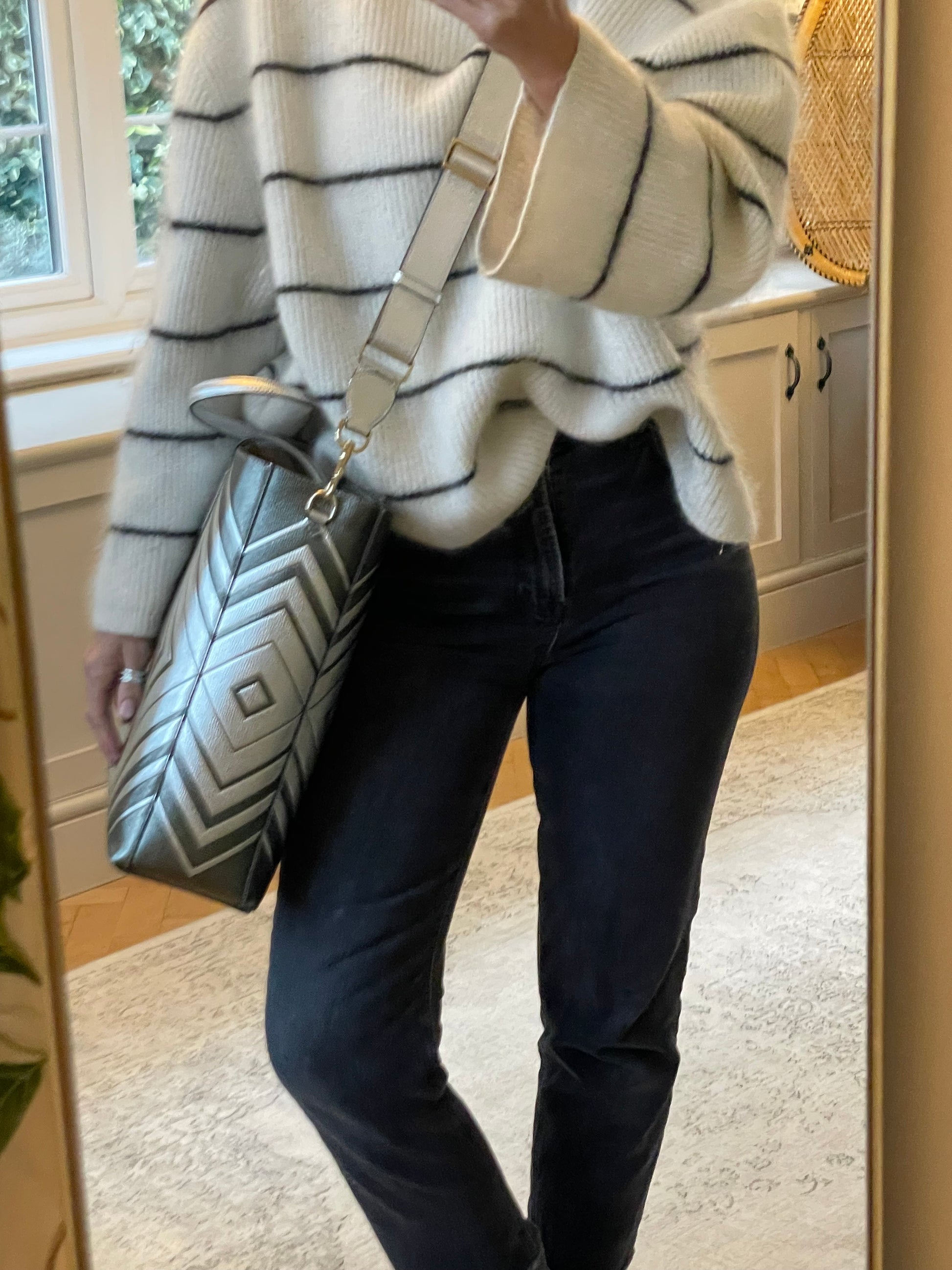 The finish on the bag is almost antiqued in style. Barely used so it’s in beautiful condition. Slight imperfection along the inside zipped pocket. Couple of tiny imperfection marks and a small mark at the base of one of the handles.