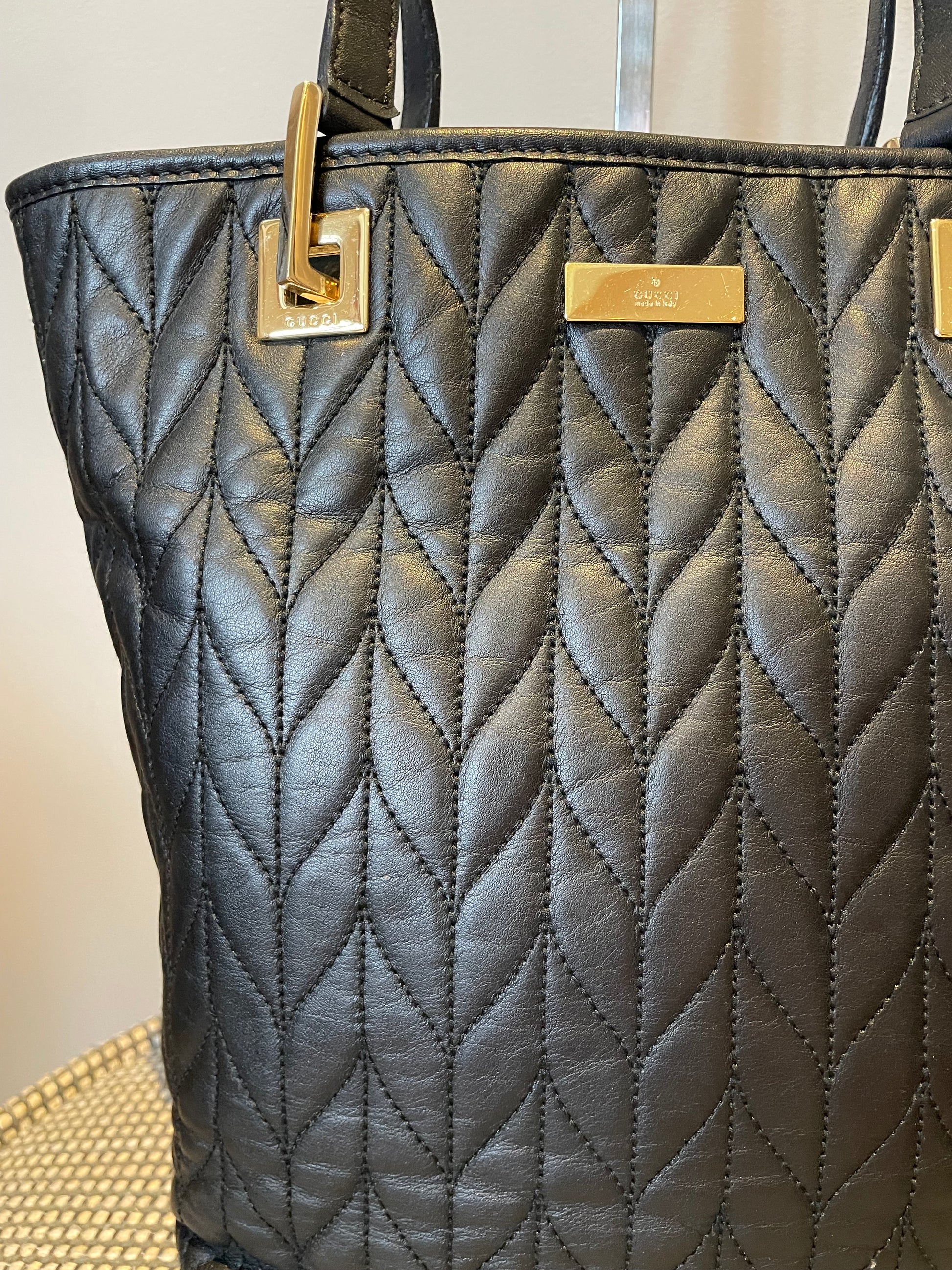 Preloved Gucci Quilted Bucket Top Handle Tote Bag, Small