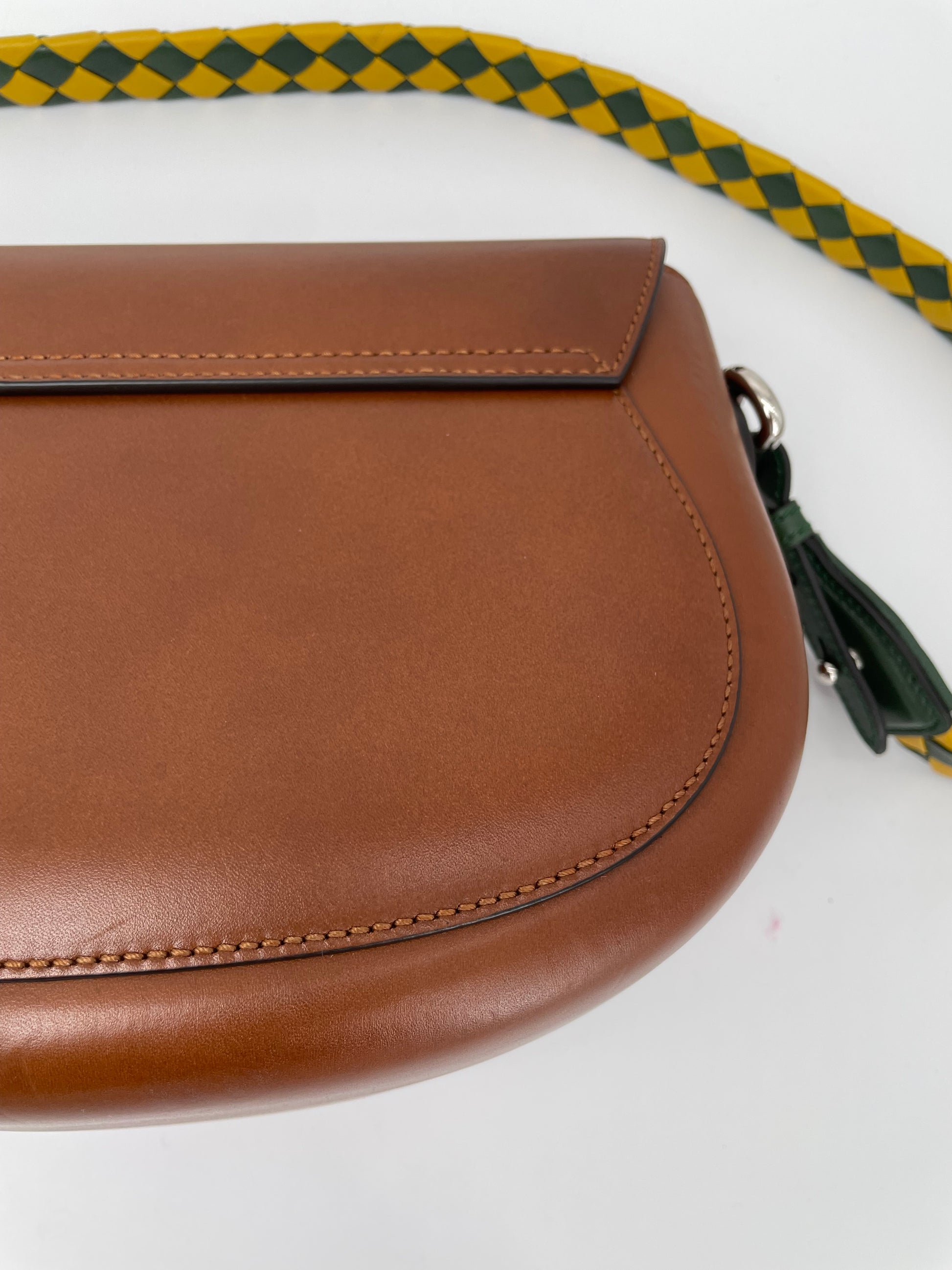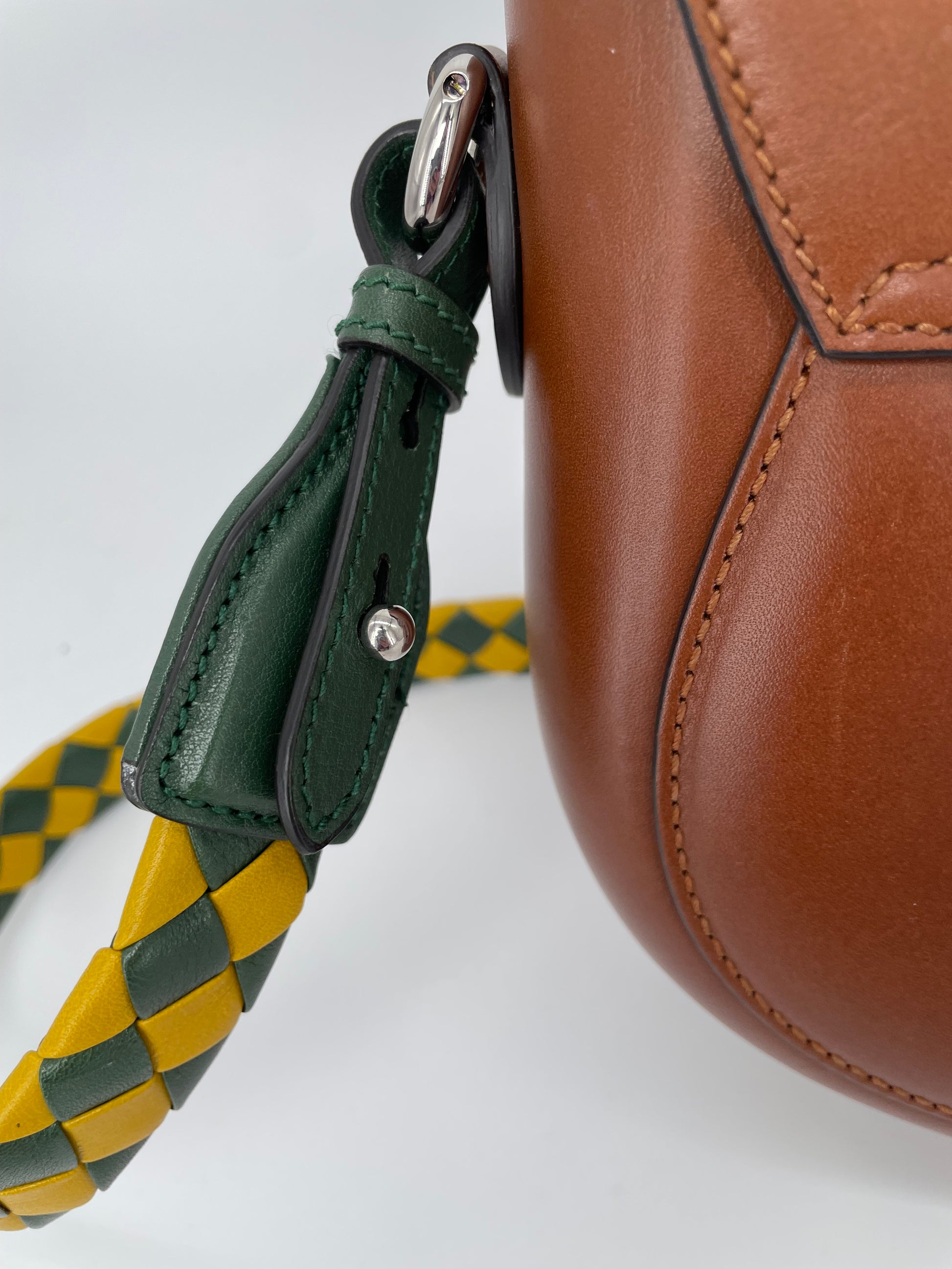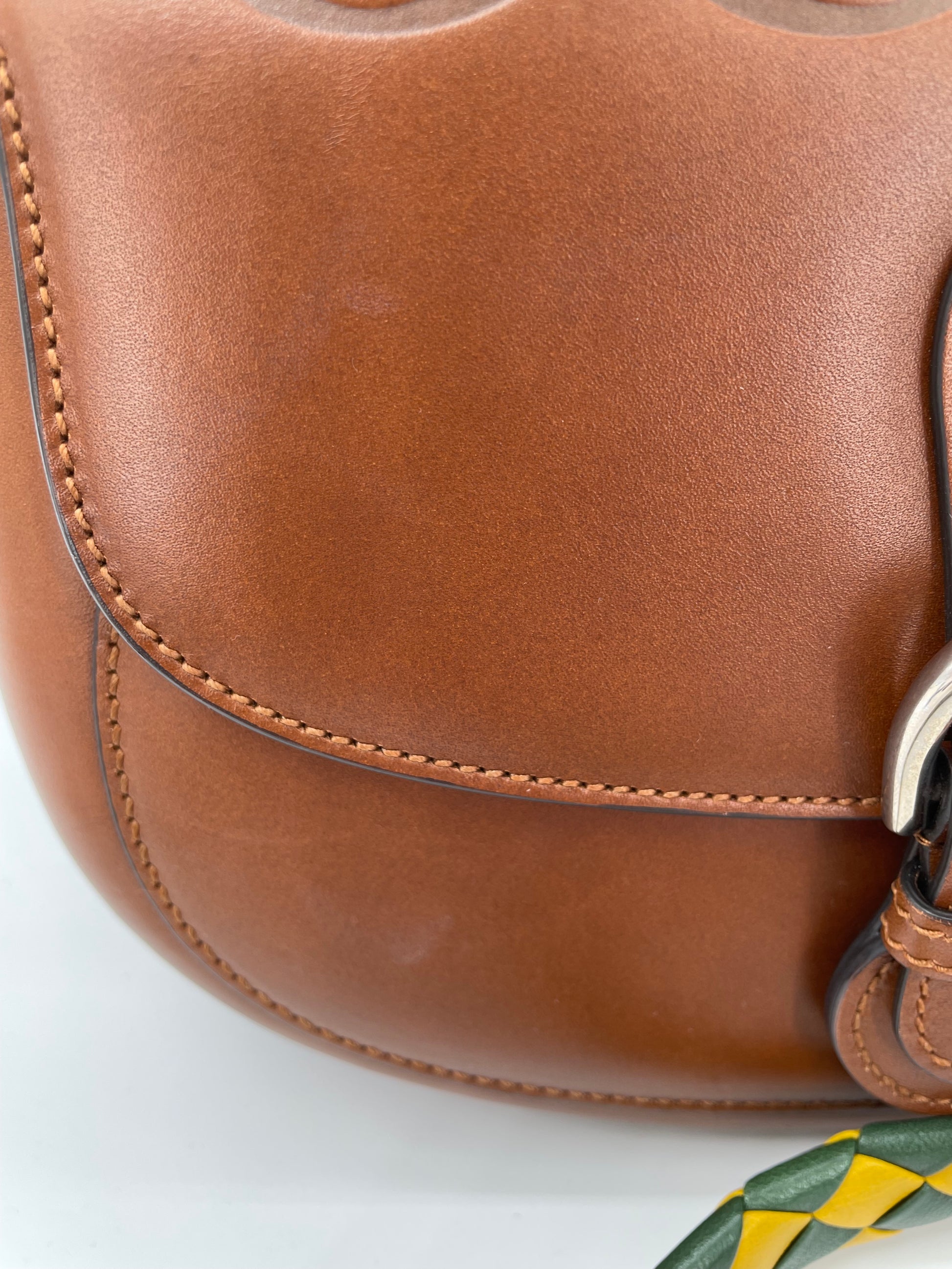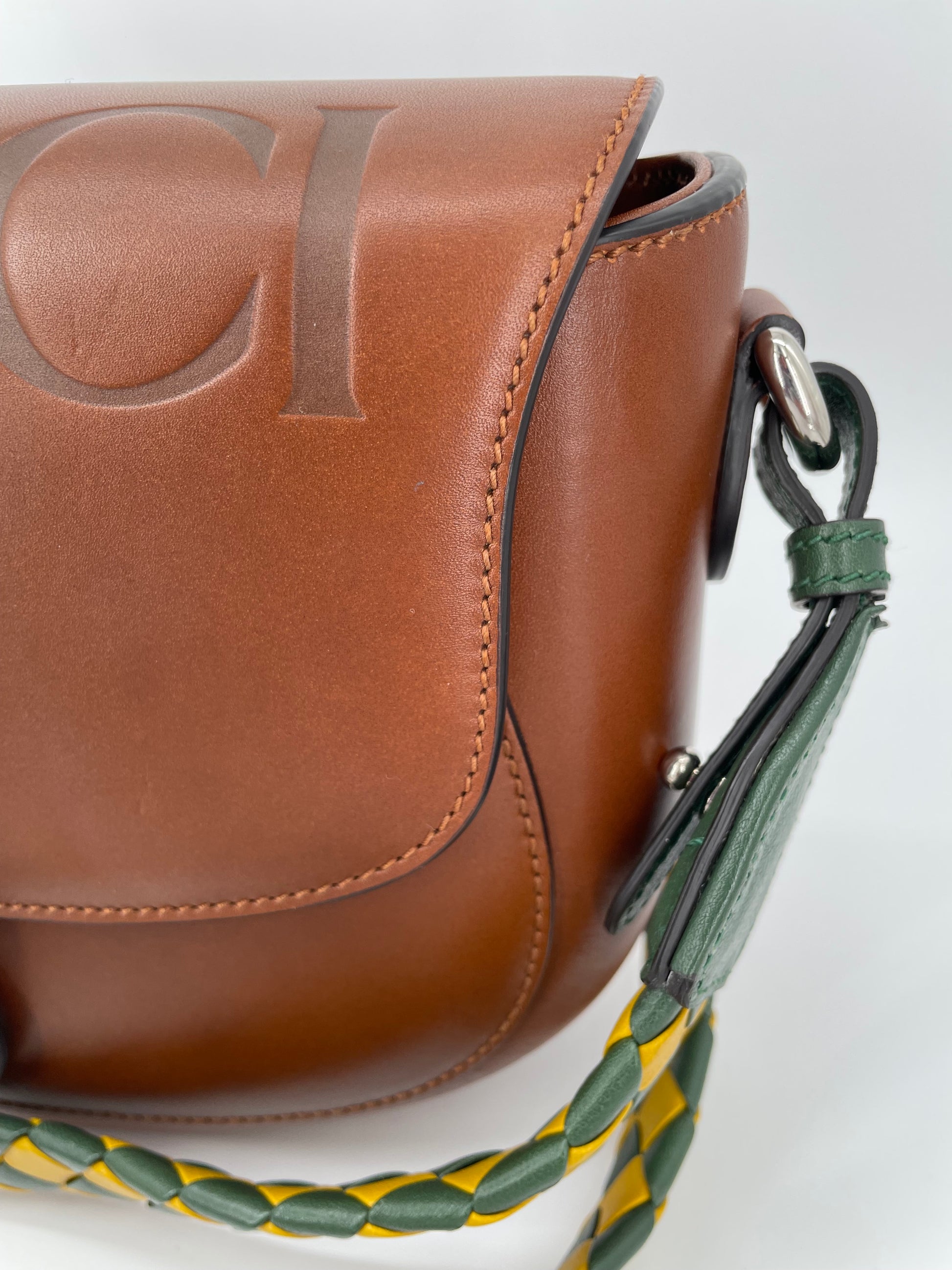 This is the Gucci Small Embossed Aria Logo Shoulder Bag. It features a large embossed logo on the leather body and a distinctive woven strap with silver-tone hardware. This collection was designed by Alessandro Michele and was to celebrate the iconic Italian brand’s 100th anniversary. This bag celebrates the rich equestrian heritage combined with the modern, sleek elegance the brand is known for.