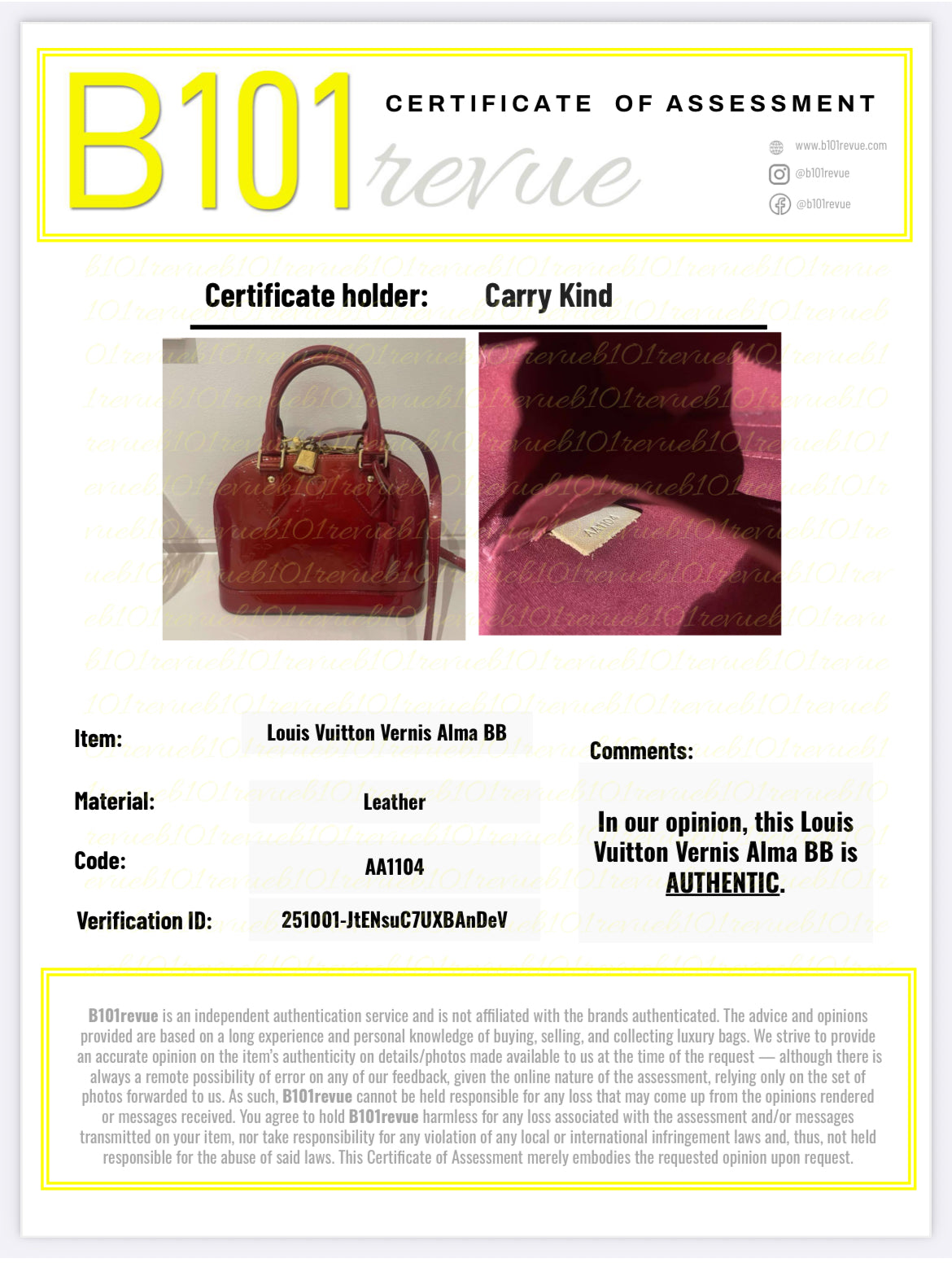 Comes with dustbag along with a certificate confirming authenticity.