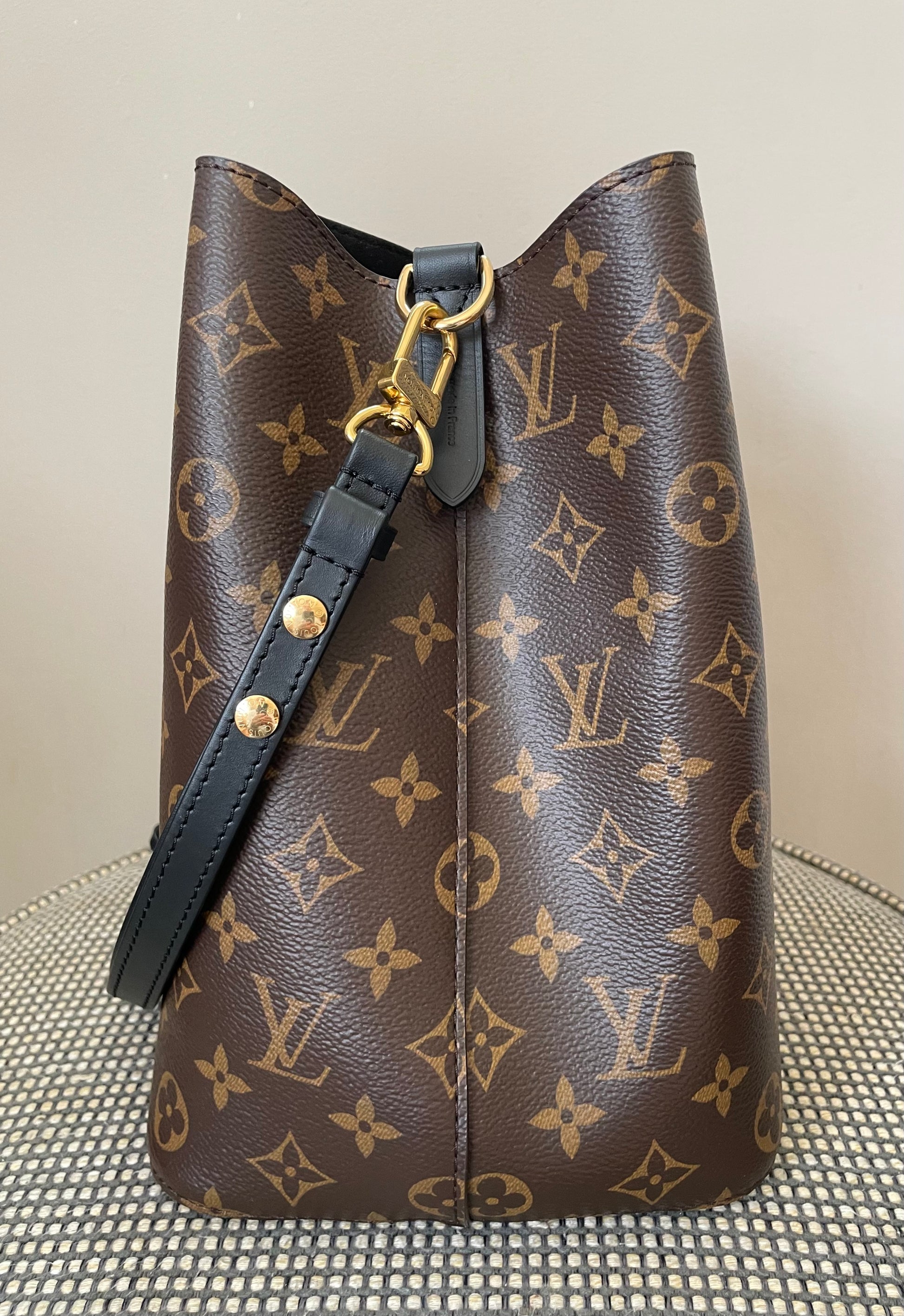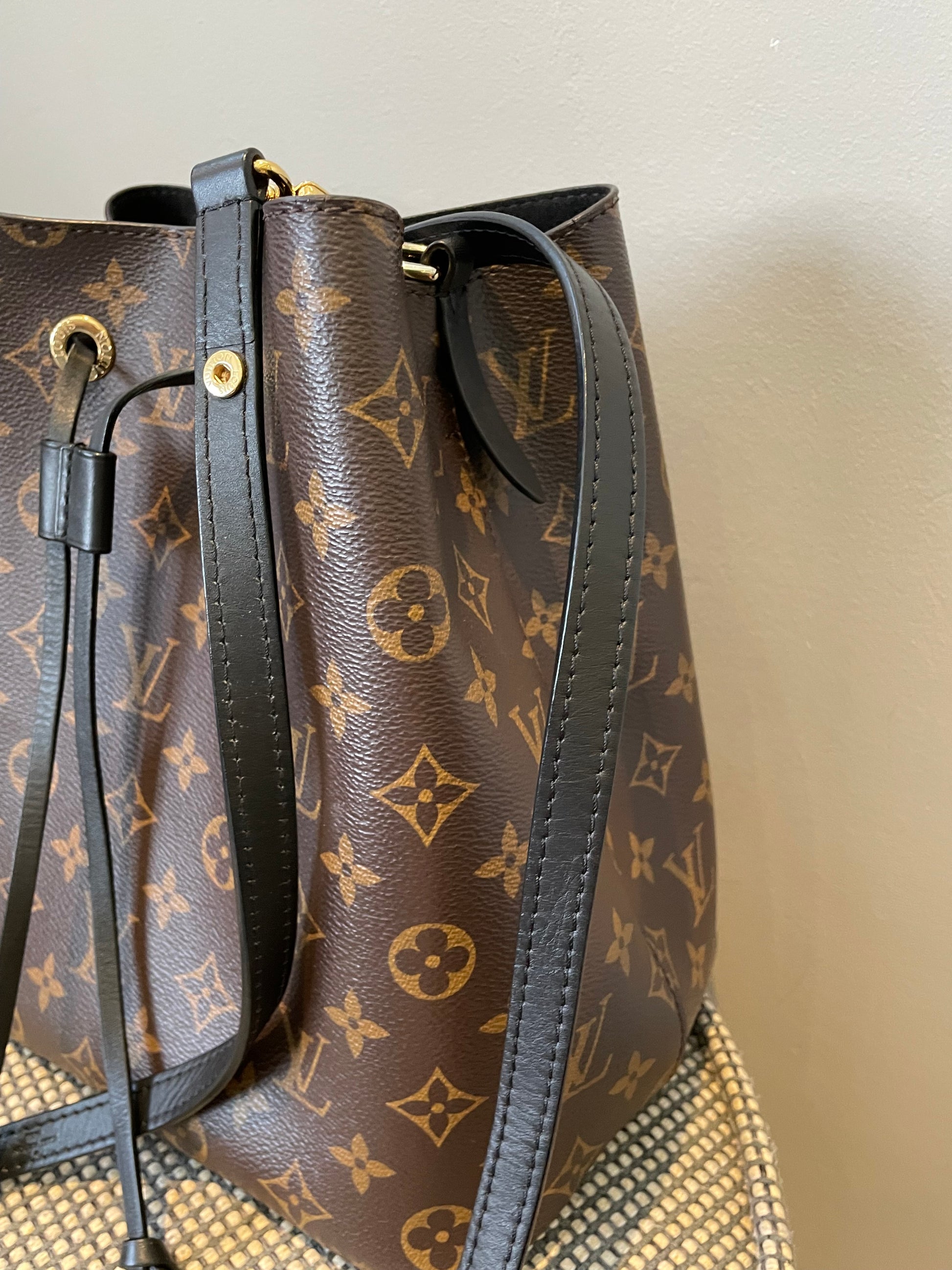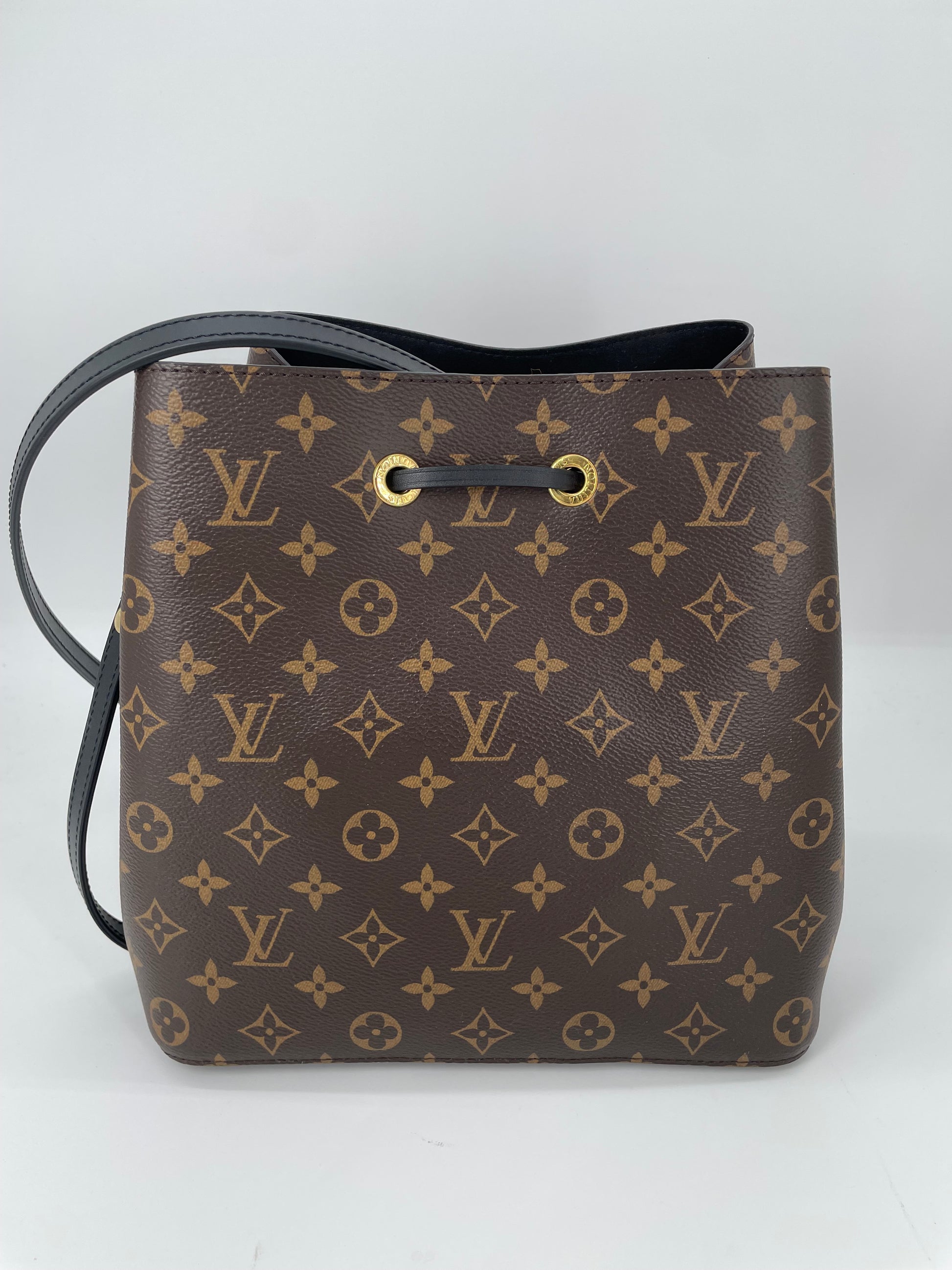 This is a beautiful Louis Vuitton NeoNoe bag. The bag was originally created in 1932 to carry five bottles of Champagne the Noe bag is an iconic and rich piece of Louis Vuitton history. This bag was re-released In 2017. The classic bucket bag is combined with a black drawstring closure and spacious interior. Goldtone hardware. There is a central secure zip pocket to the centre of the main compartment.
