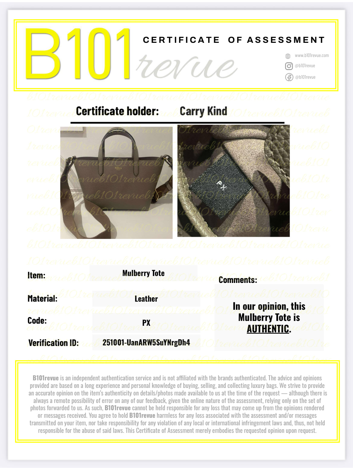 Comes with dustbag, care card and a certificate confirming authenticity.