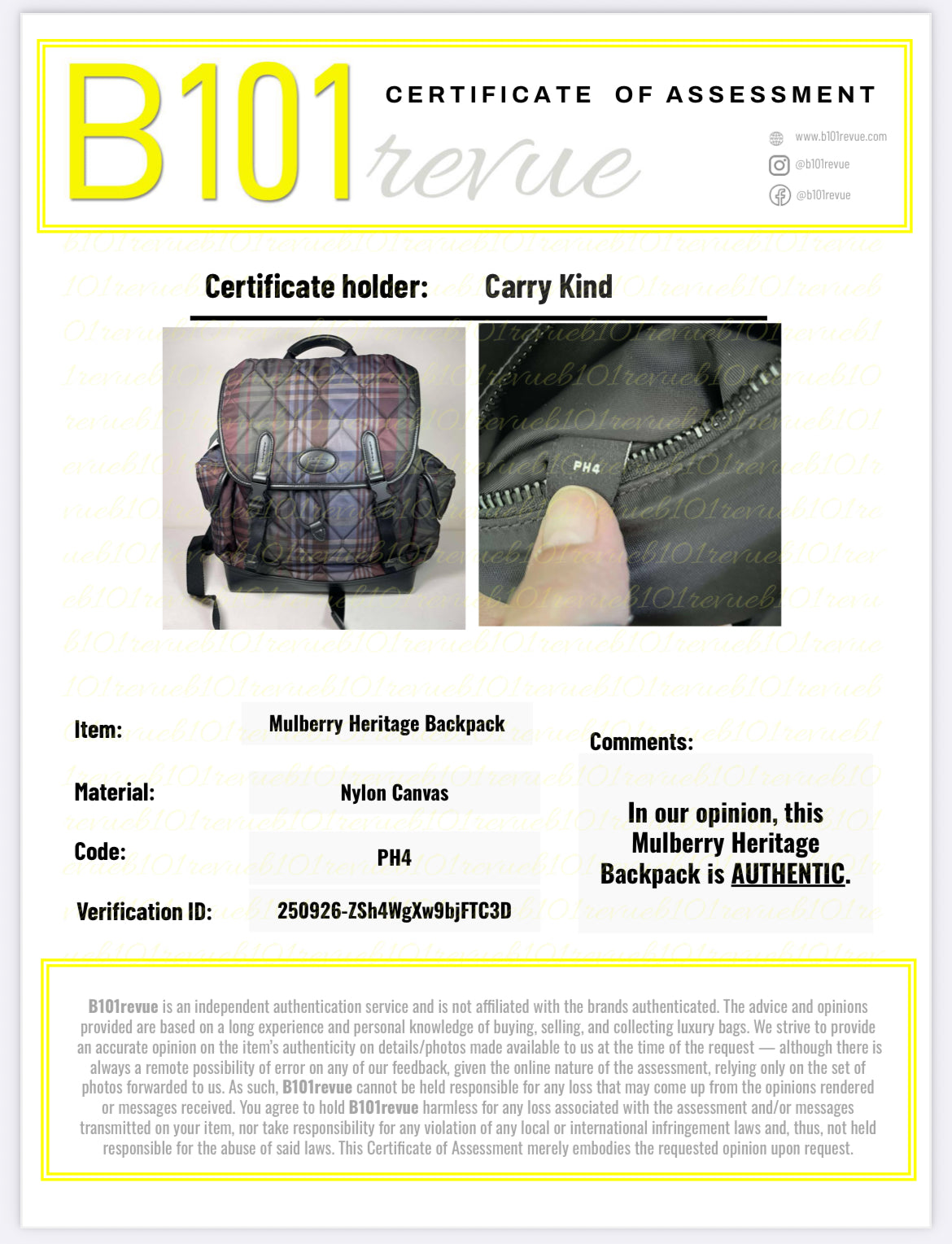 Comes with dustbag, product card, care cards and an independent certificate confirming authenticity.
