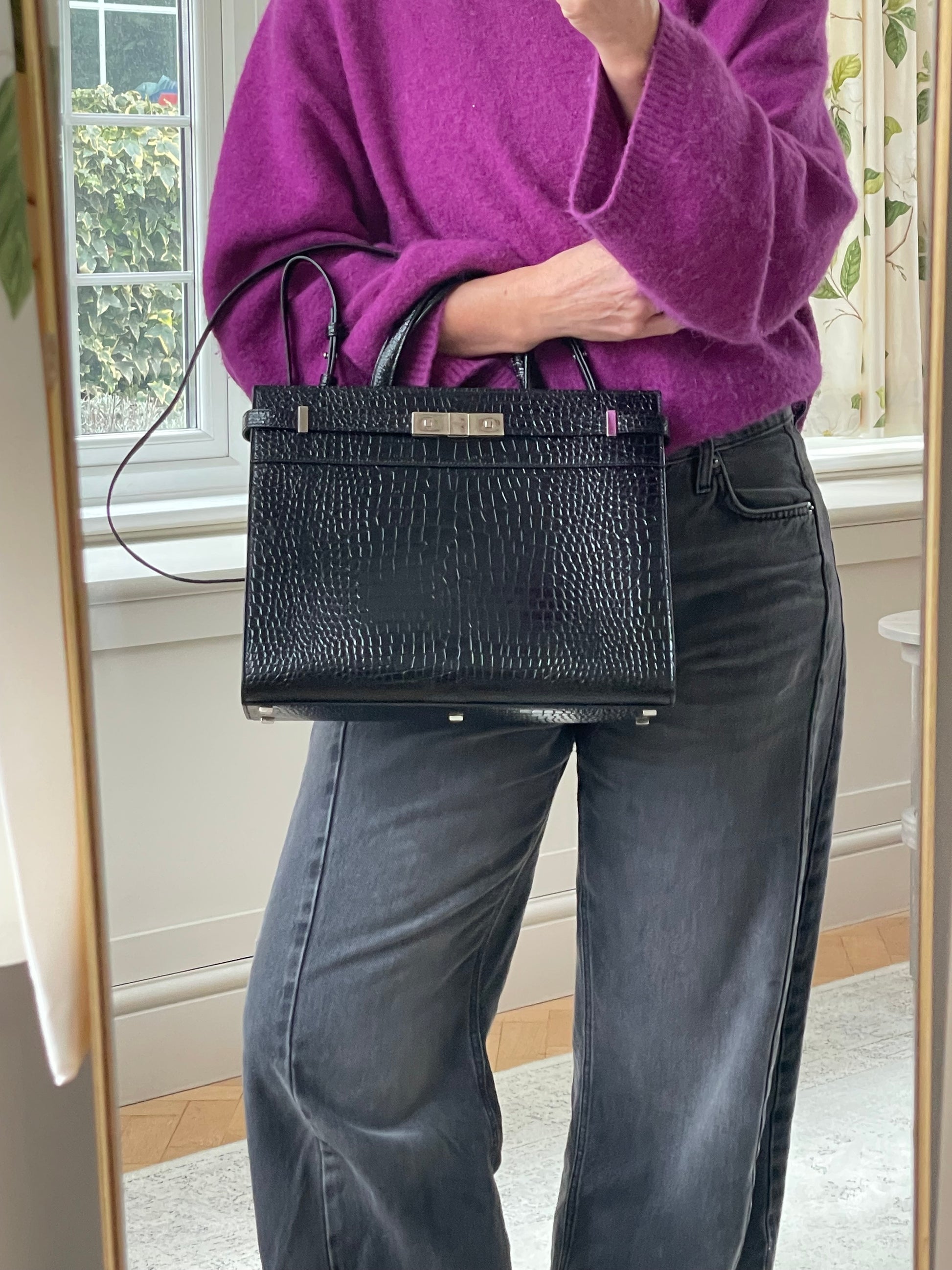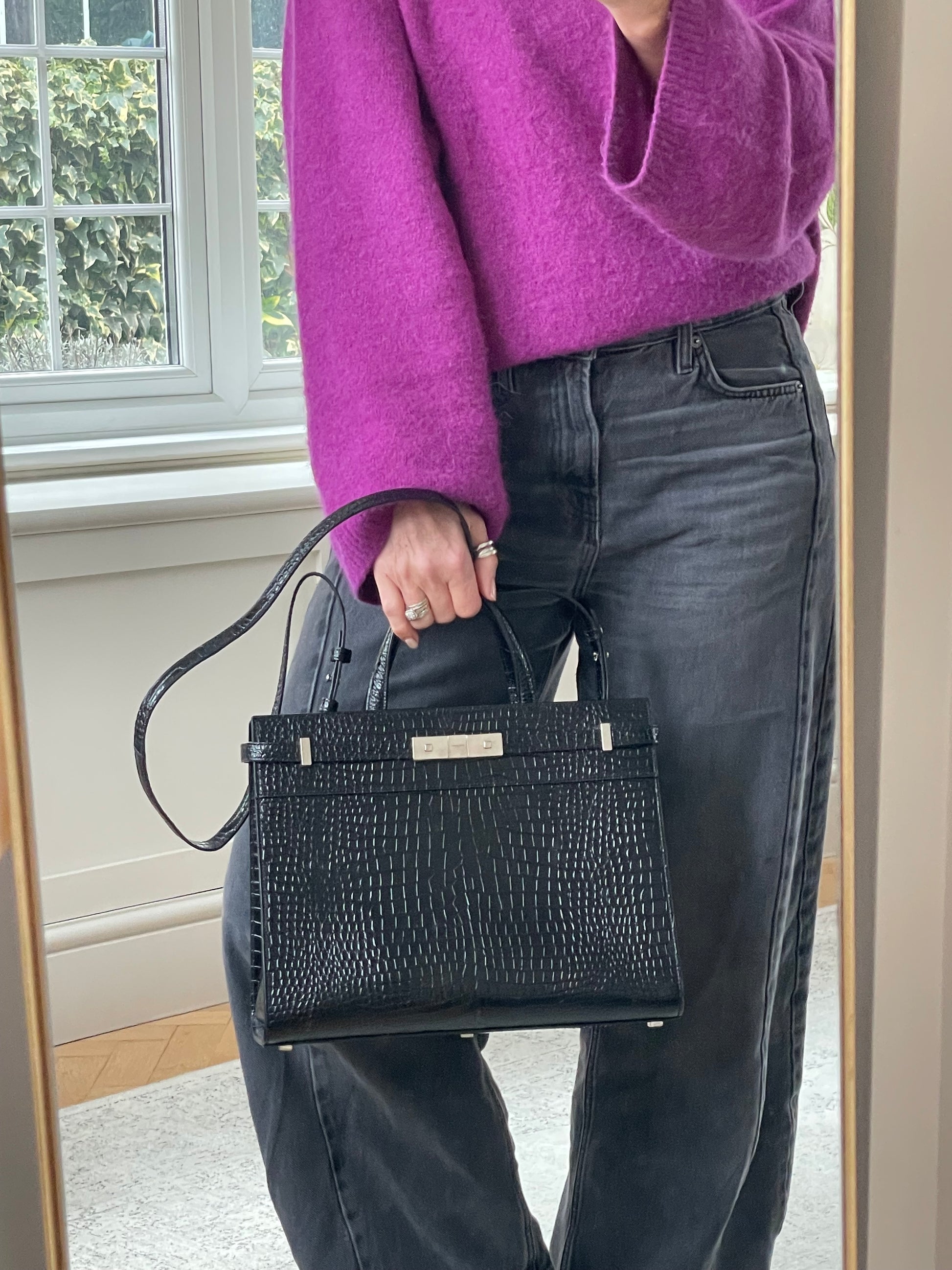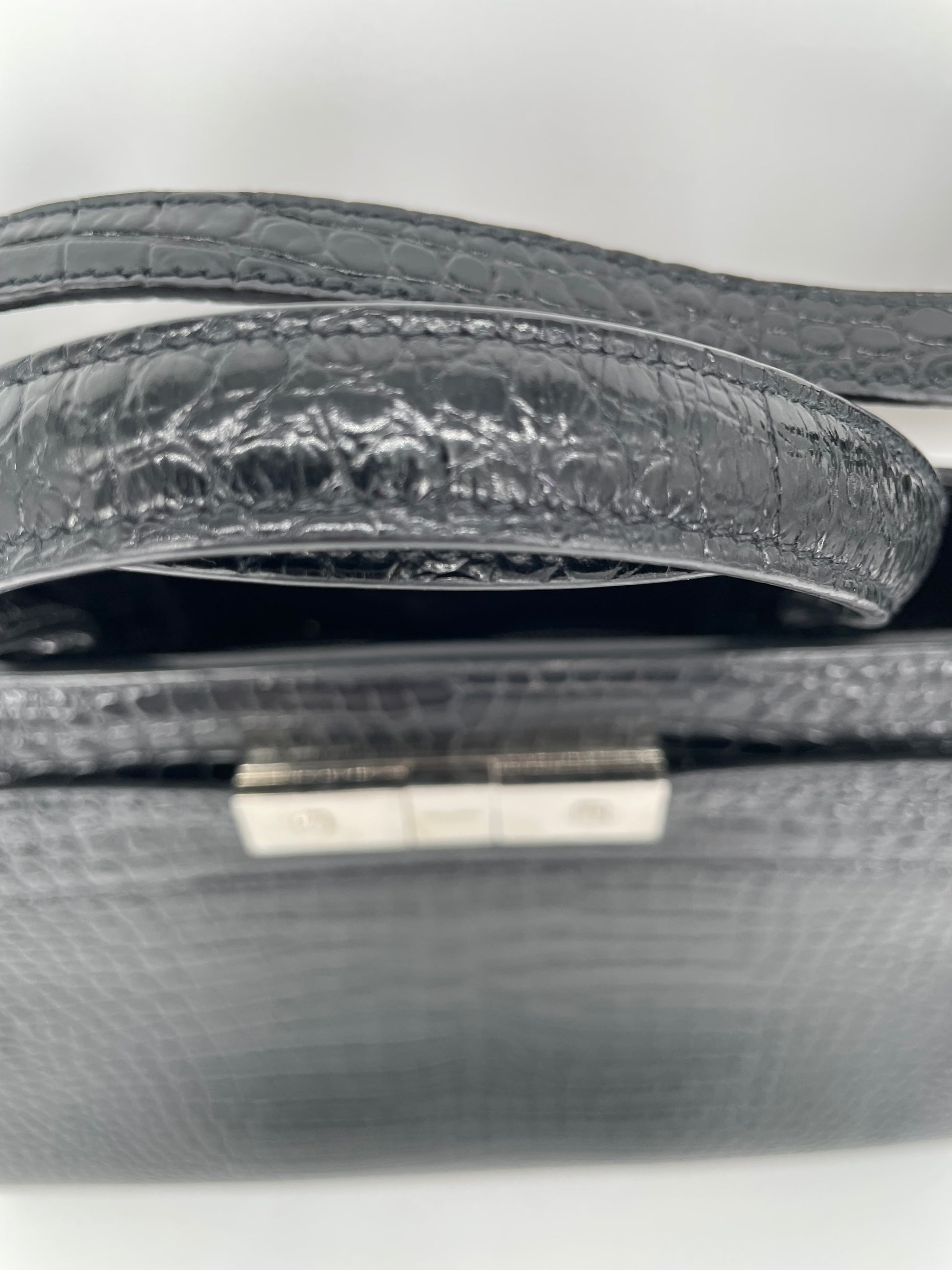 This is a stunning, lightweight tote bag in fantastic condition inside and outside. The glossy textured leather is in great condition with minor signs of use to the corners. Slight softening to the handle (long strap has never been used) Inside is clean with minor signs of use. There are some scratches to the hardware.