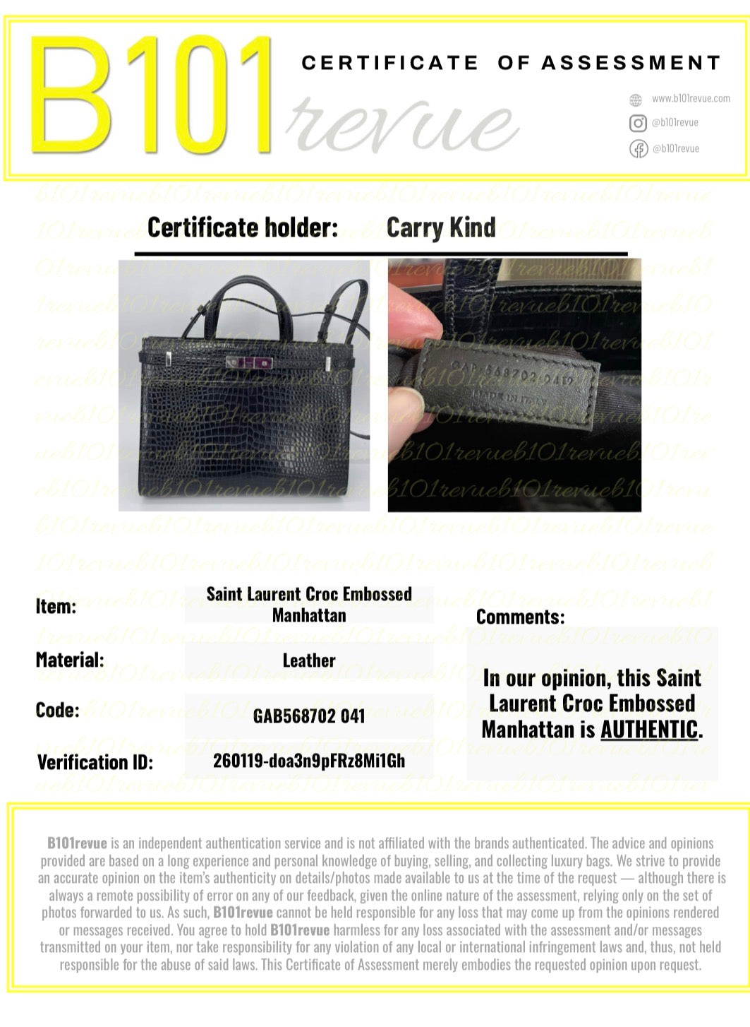 Comes with cards and dustbag, along with an independent certificate confirming authenticity.